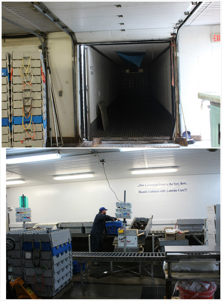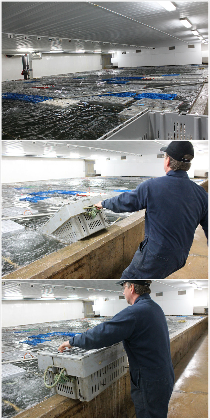 鲜活的龙虾从暂养池拉出准备装箱。