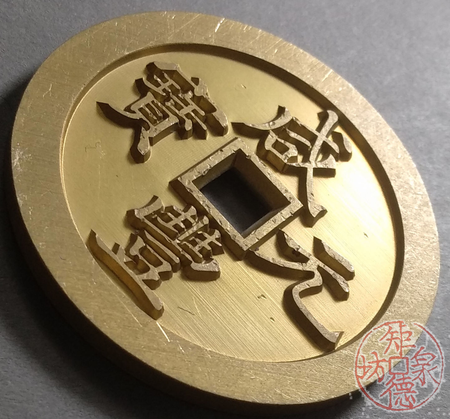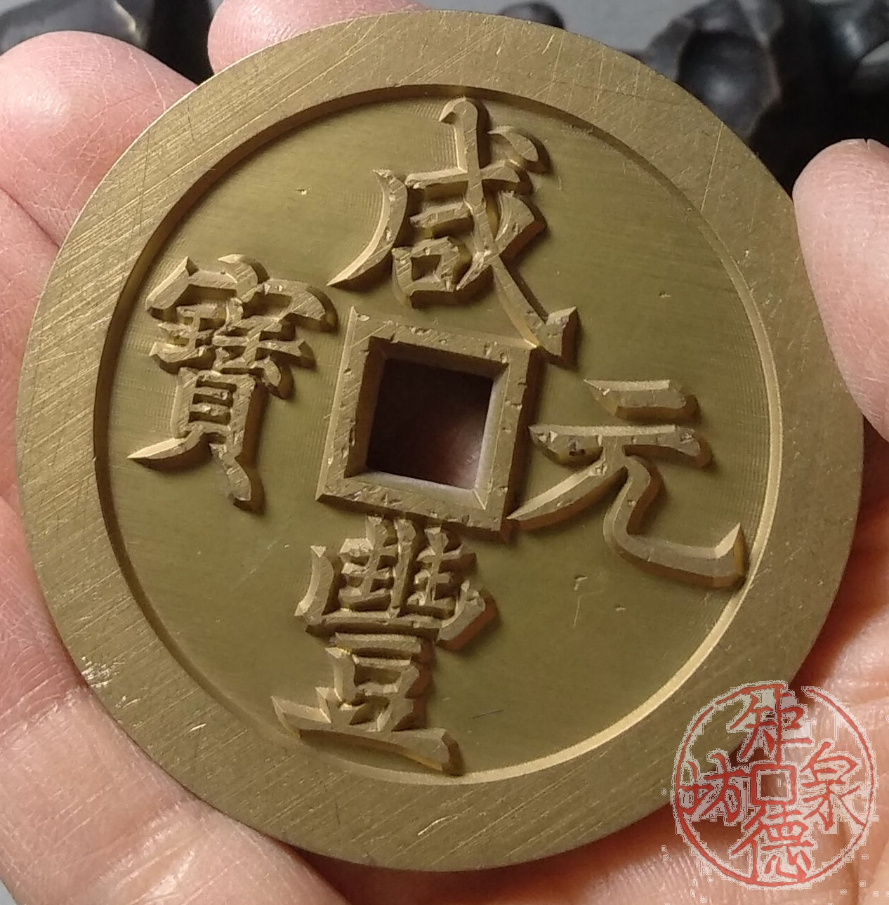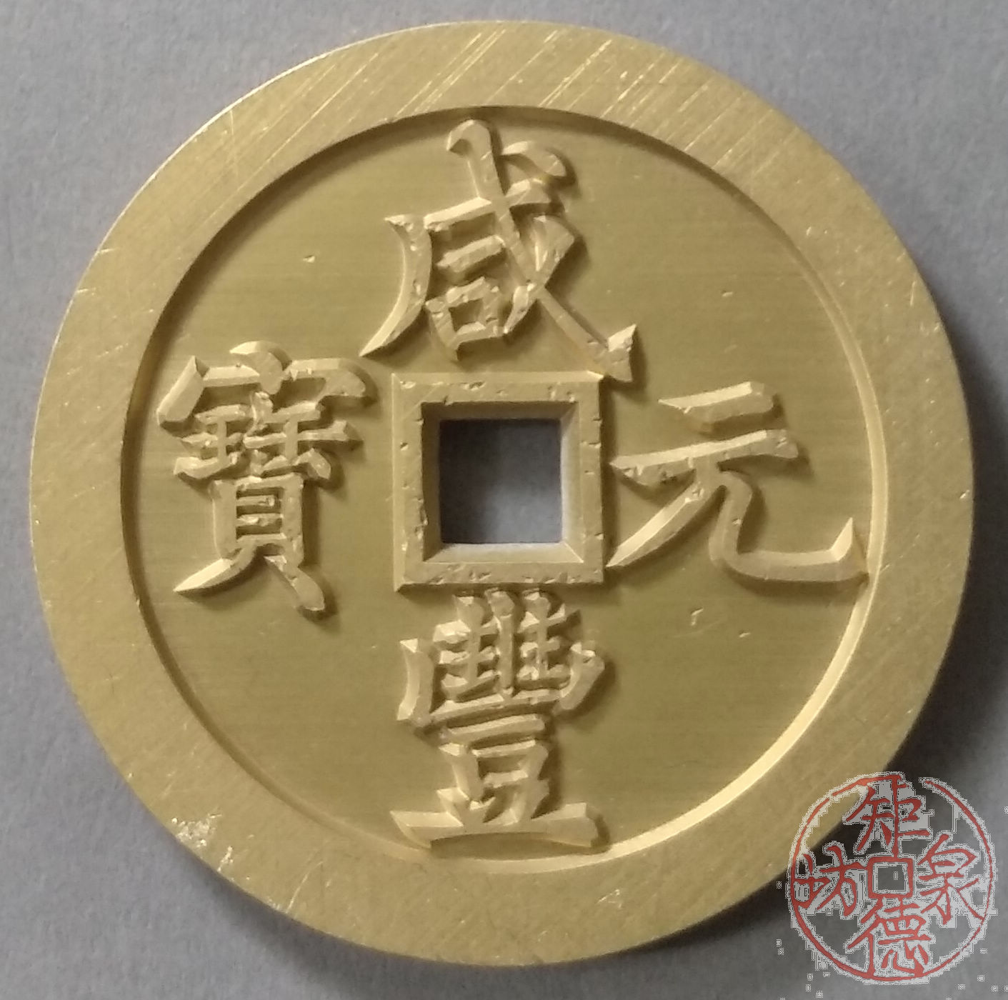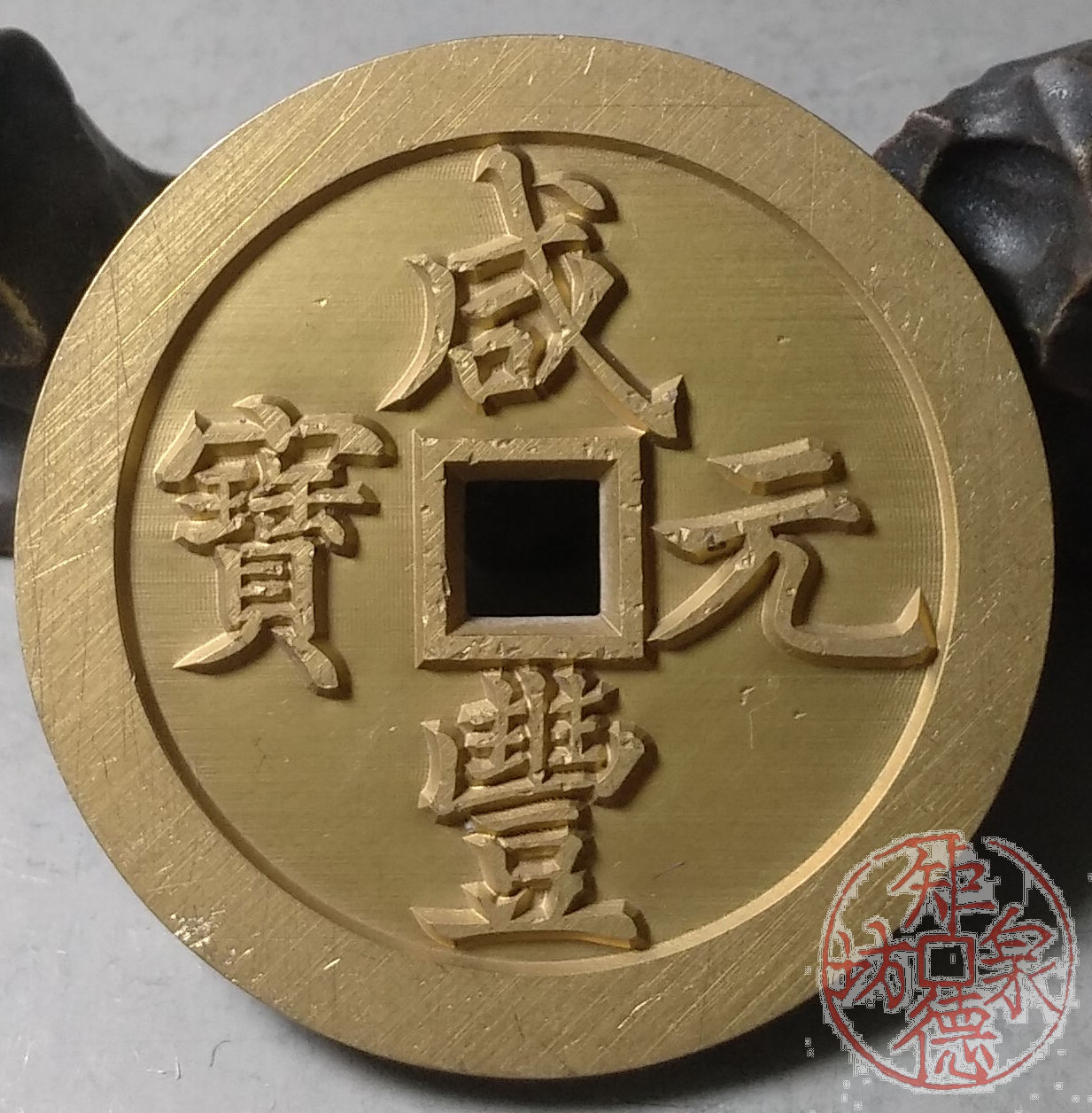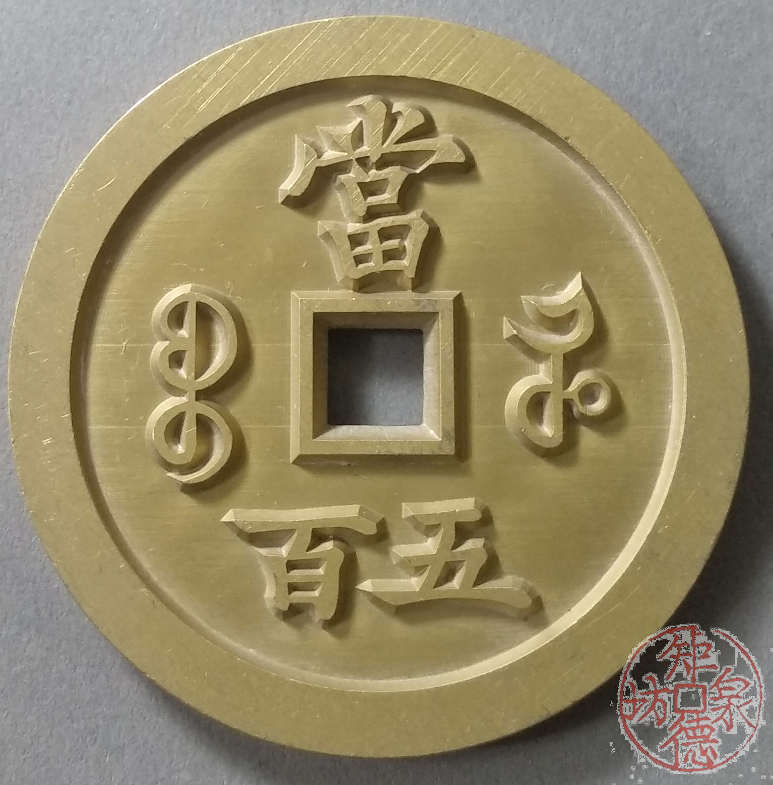 古泉书馆文创 咸丰元宝 宝河当五百 雕母 文房铜镇 DM0007