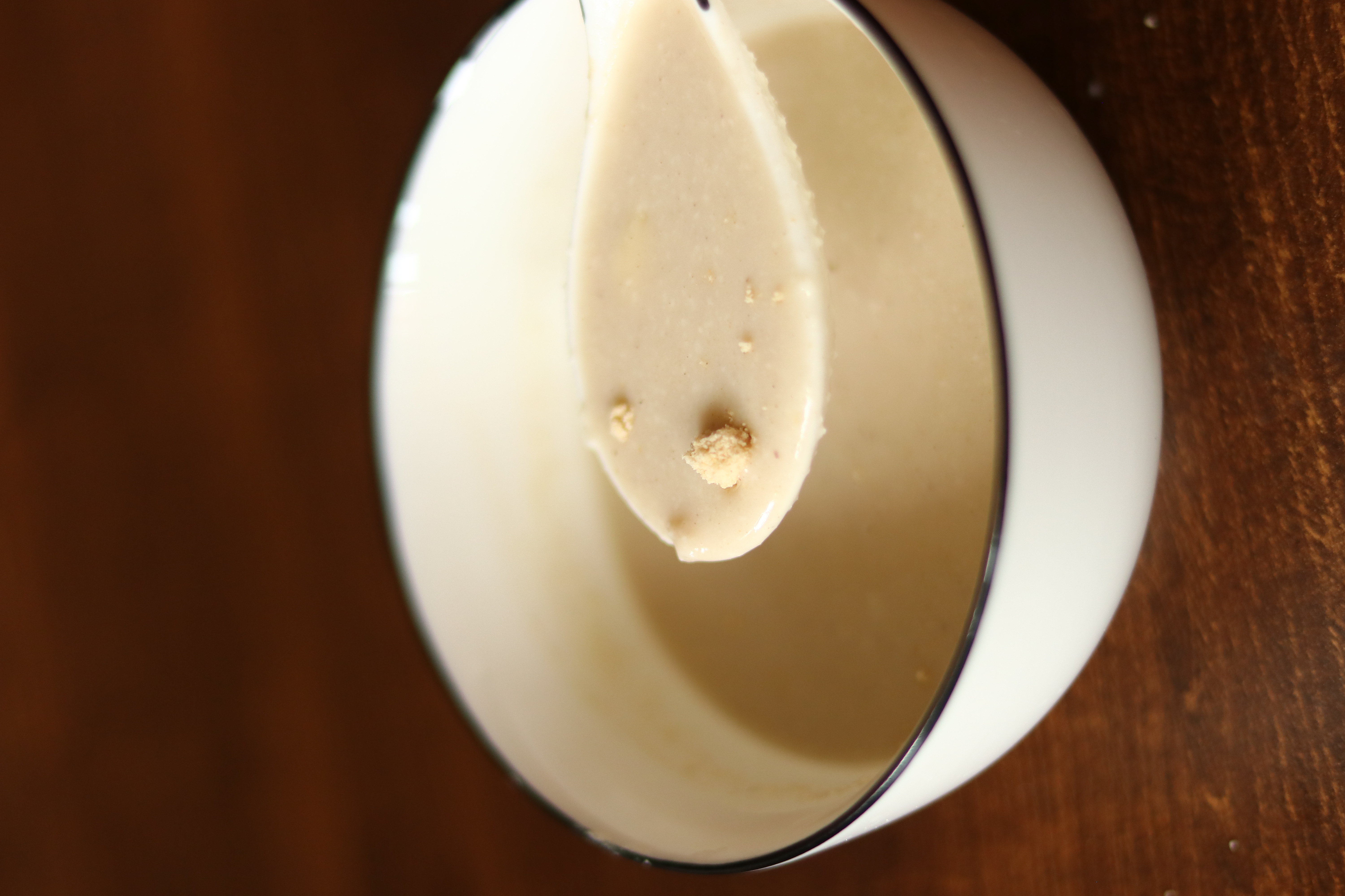 不添加奶和糖等其它成份的杏仁七白饮,做出来有点偏黄,不是那种米白色,因为这七种食材,除了杏仁,本来就不是米白色,像白合,它就是那种微黄色的,有的白合上面还有黑斑,但这都是健康的食材的颜色。