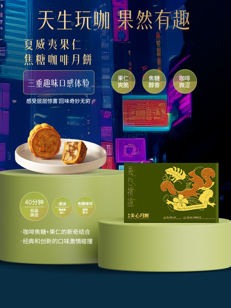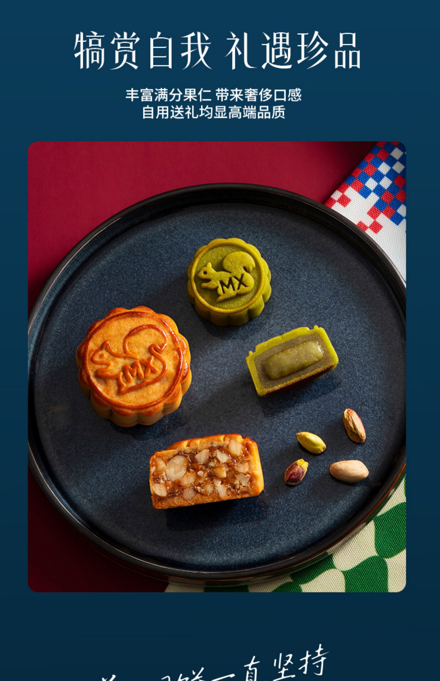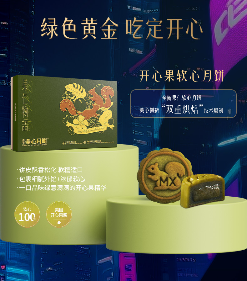 【乐享中秋】香港美心果仁物语月饼礼盒8个装460g/070132 开心果软心*夏威夷果仁焦糖咖啡味趣味口感新体验