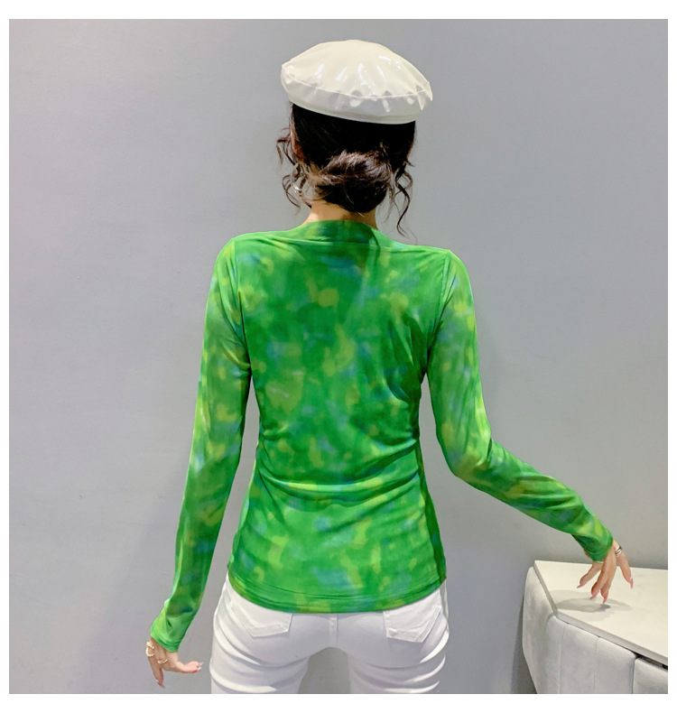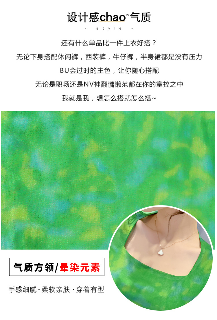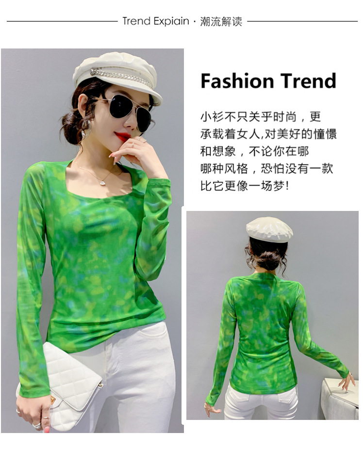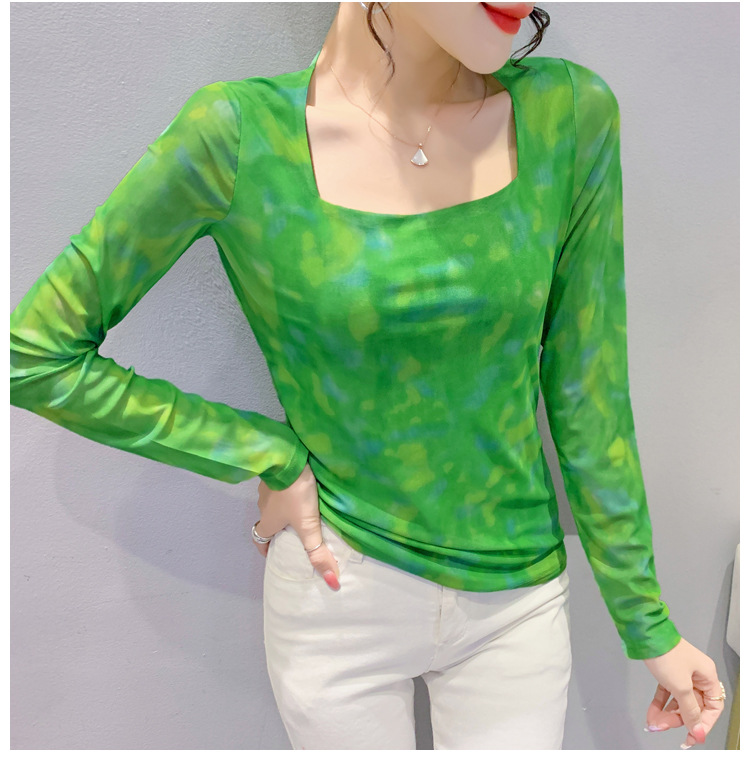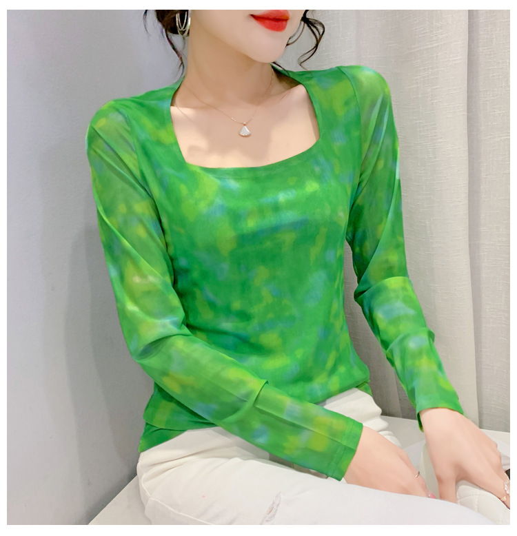 设计感方领修身打底衫,洋气晕染网纱T恤KQL-9120