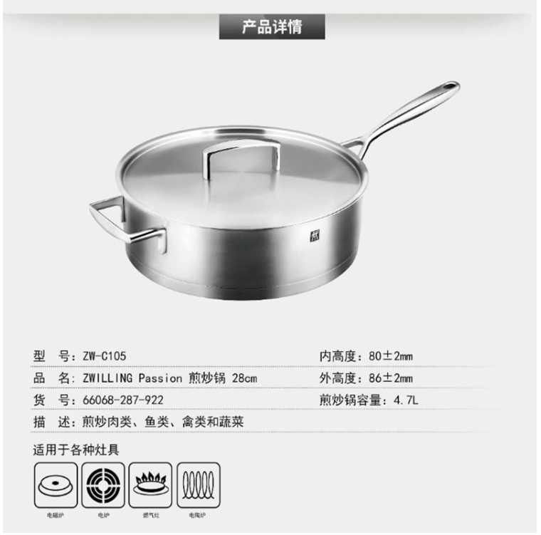 双立人ZW-C105 ZWILLING Passion 煎炒锅28cm