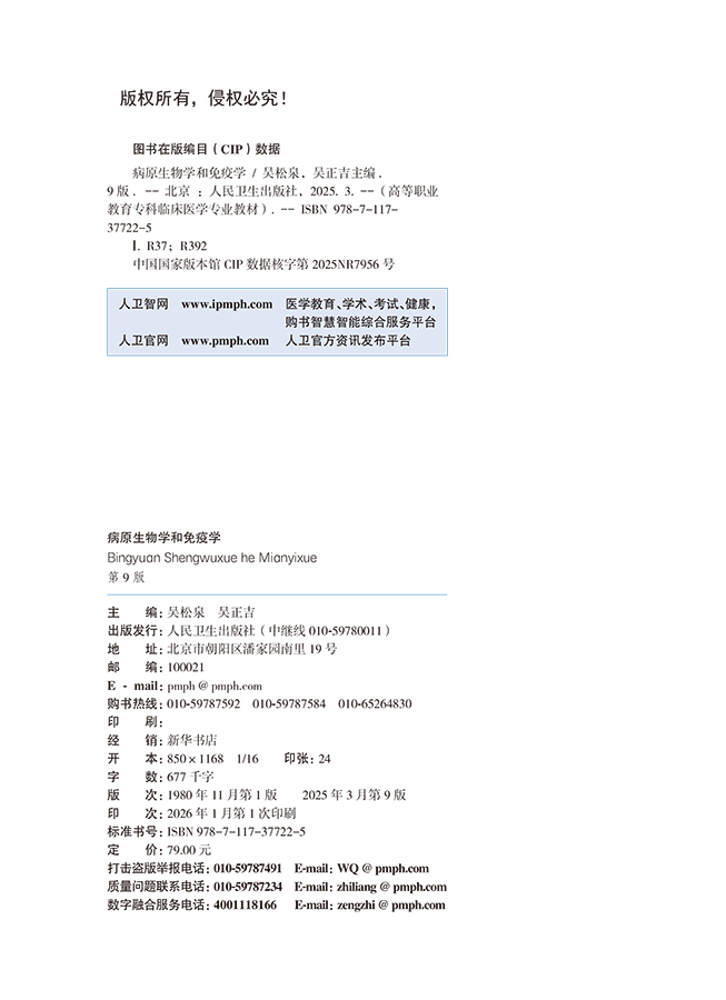 病原生物学和免疫学 第9九版 十四五规划教材 全国高等职业教育专科教材 吴松泉 吴正吉 主编 供临床医学专业用 人民卫生出版社
