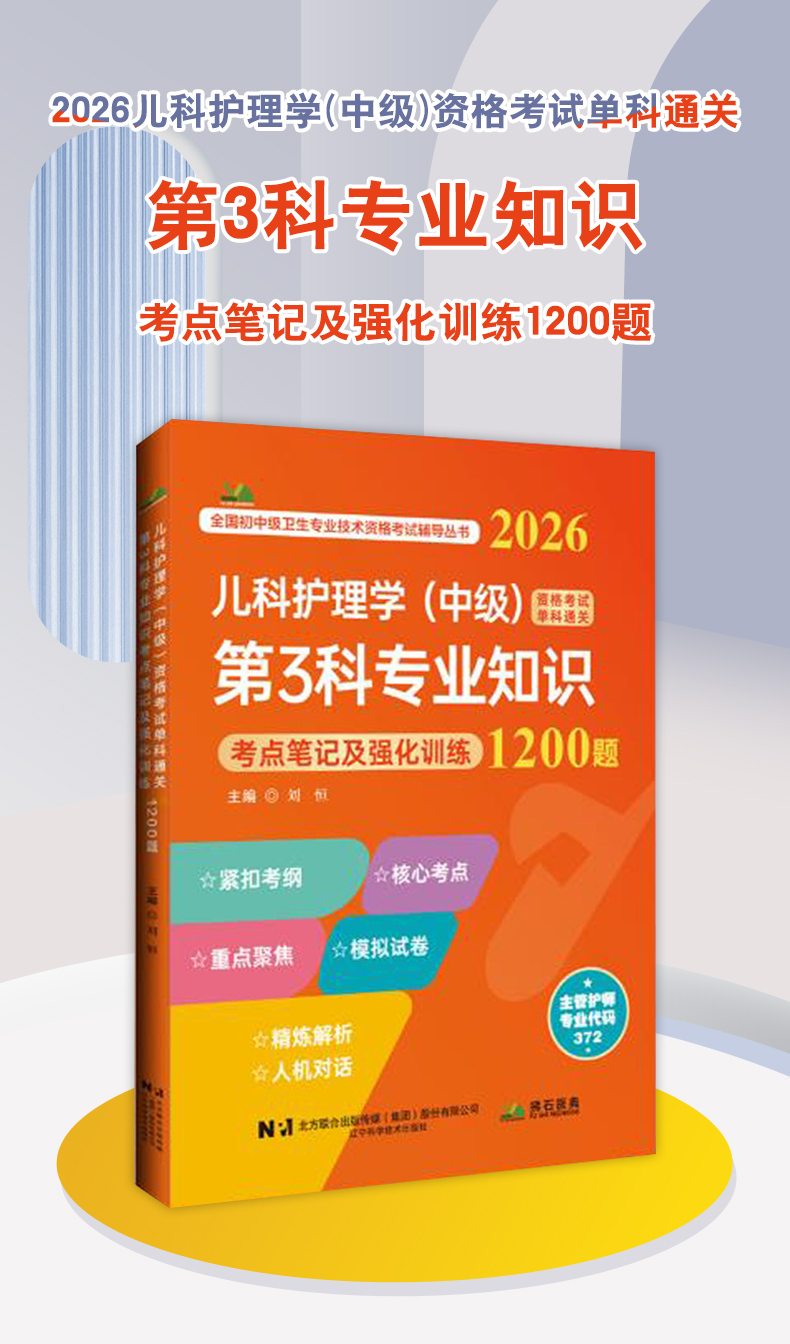 2026儿科护理学(中级)资格考试单科通关第3科专业知识考点笔记及强化训练1200题 刘恒 主编 9787559138682 辽宁科学技术出版社