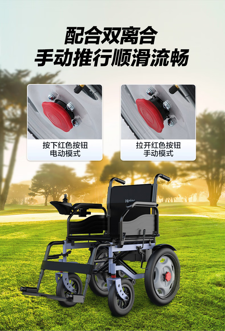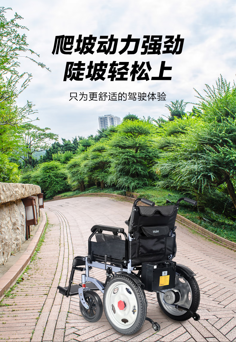 海尔电动轮椅老人全自动轻便可折叠旅行轮椅折叠老人轻便旅行手推车 电动轮椅JRWD1601U-Li20