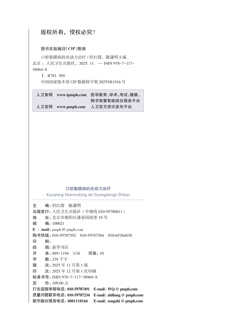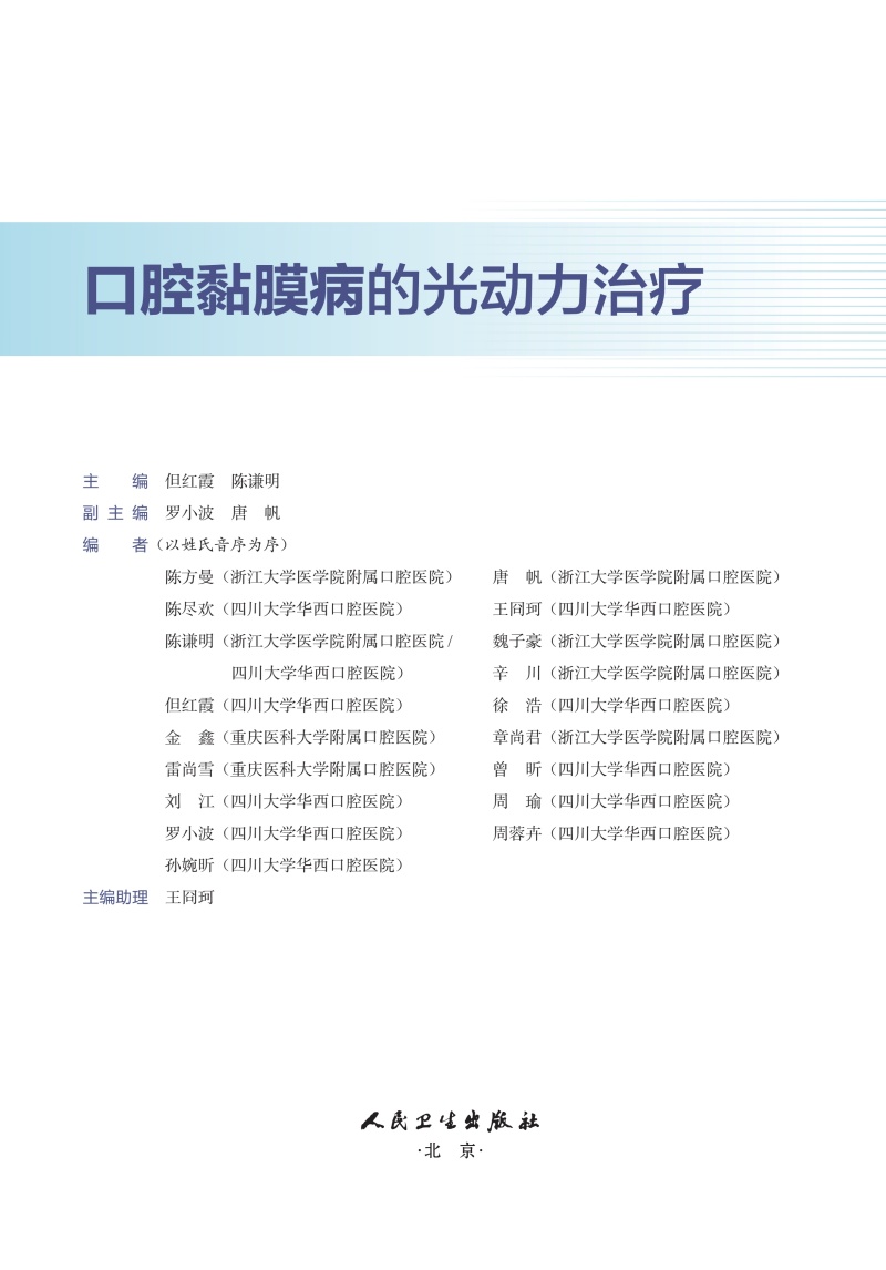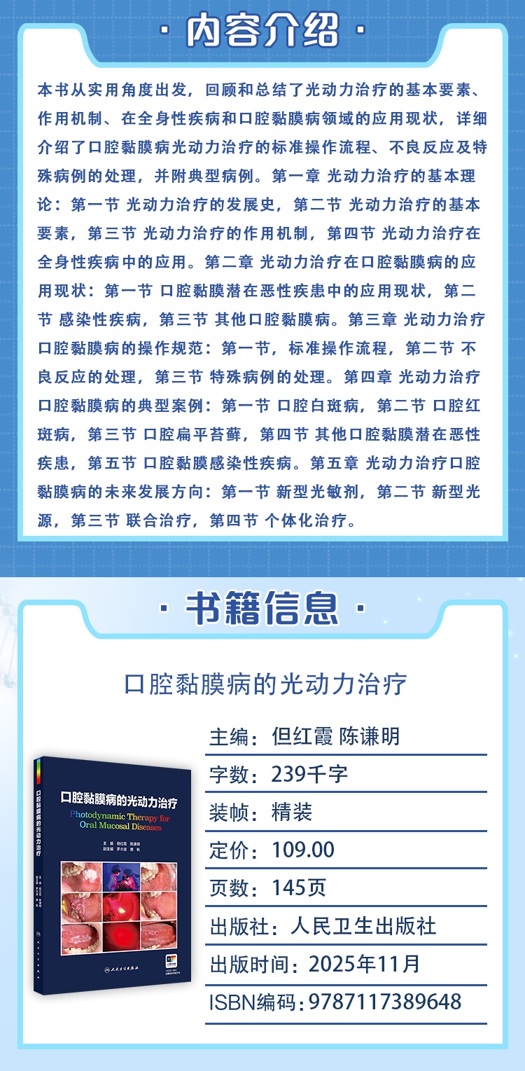 口腔黏膜病的光动力治疗 但红霞 陈谦明 详细介绍了口腔黏膜病光动力治疗的标准操作流程 不良反应及特殊病例的处理人民卫生出版社