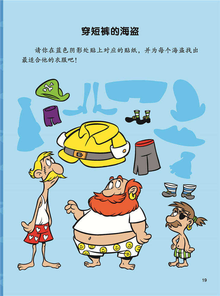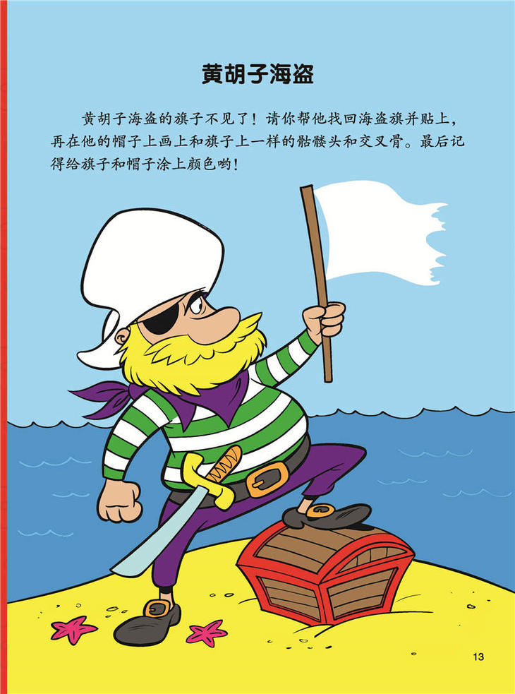| 海盗的旗帜 用骷髅头和交叉骨来制作“恐怖”的海盗旗吧!记得把旗 帜的背景涂成黑色哟。 帽 子 给下面这顶帽子涂上颜色,再给帽子加点儿装饰,最后在 蓝色阴影处贴上合适的贴纸,让帽子变得更闪亮吧! | |||||||