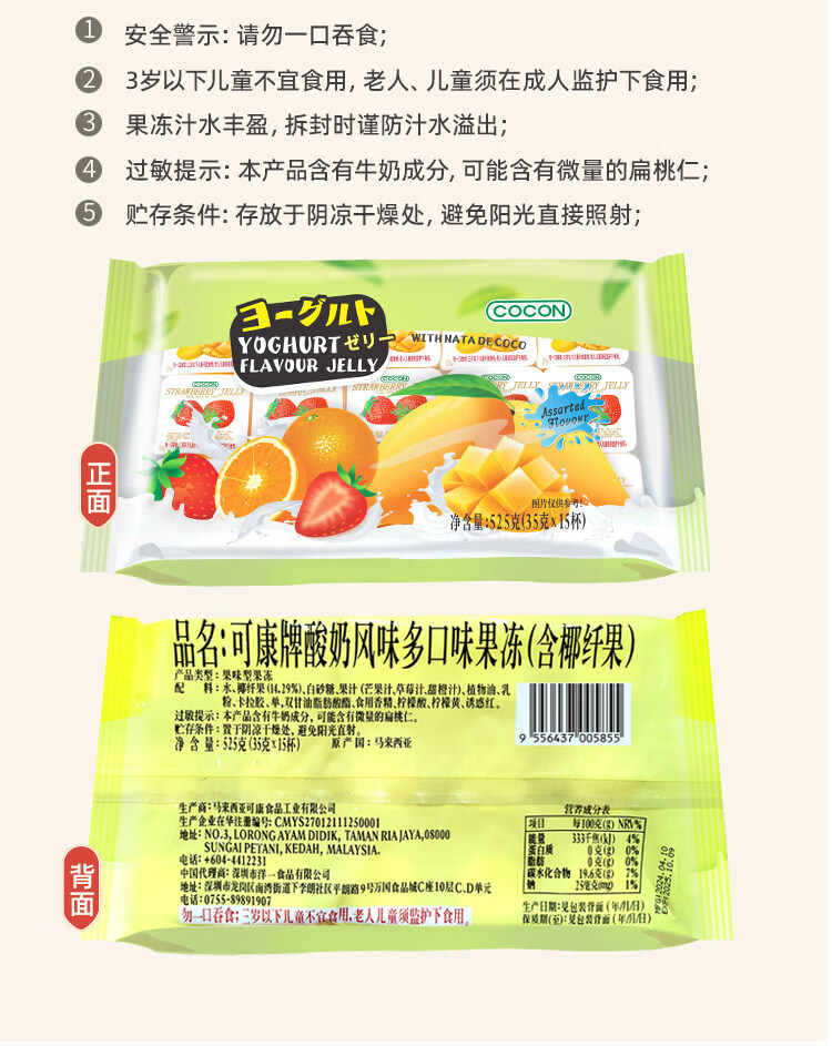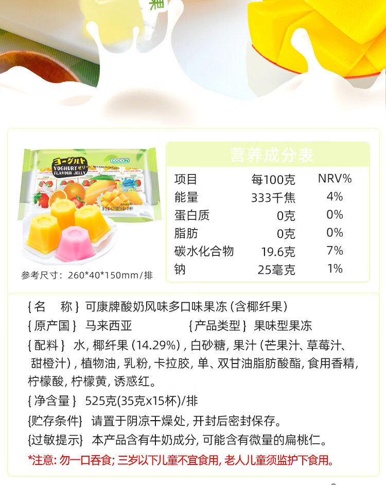可康牌酸奶味多口味果冻 210g/袋