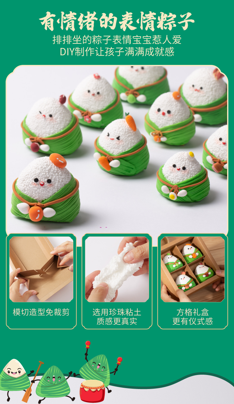 2025端午节礼物手工diy礼盒装粘土表情粽子儿童制作材料包幼儿园玩具