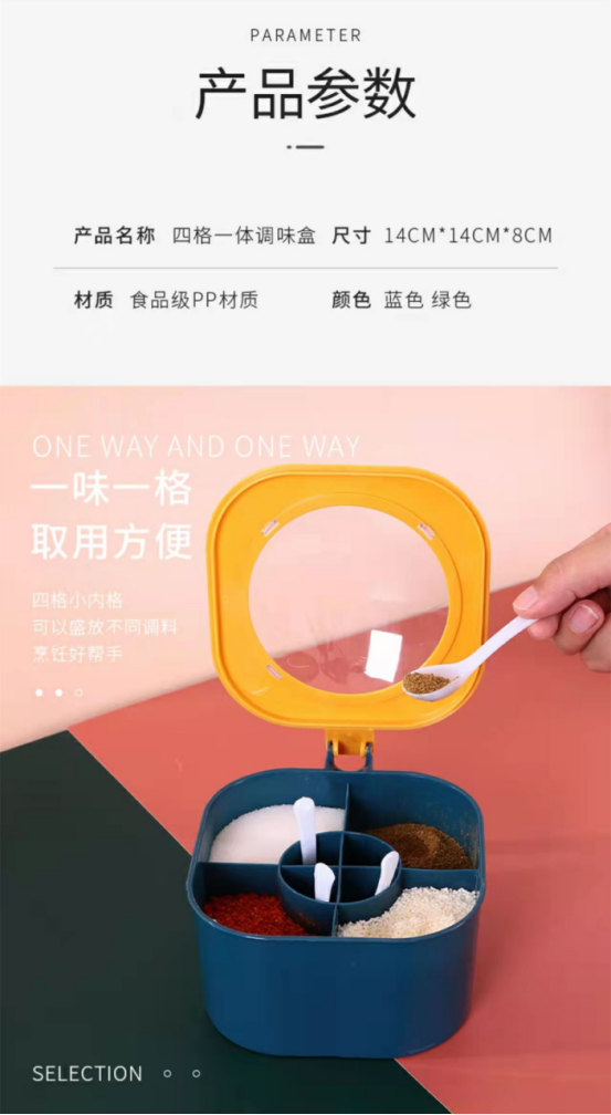 1.透明可视盖子,防尘又防虫,还防潮,一盒多格,方便舀取卫生不串味,使用方便