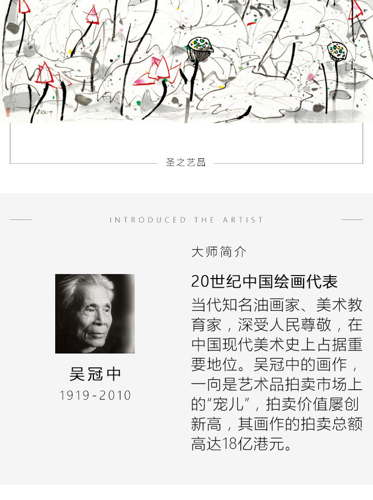 吴冠中综合版画《荷花之一》装裱尺寸:96cm×61cm