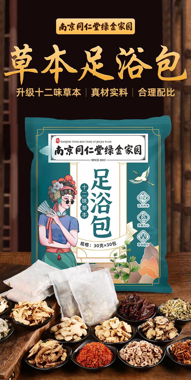 【草本足浴包】泡脚包 南京同仁堂十二味草本足浴包 家用原材料泡脚药包。ry