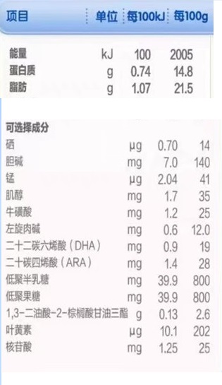 6.本品添加OPO中等稍低,且益生元相加也只有100克含量1.6克;