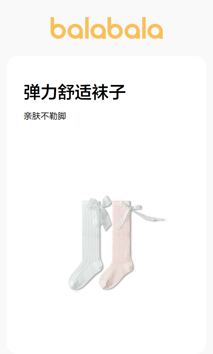 巴拉巴拉女童袜子夏季网眼袜透气薄中筒袜甜美蝴蝶结棉弹两双装