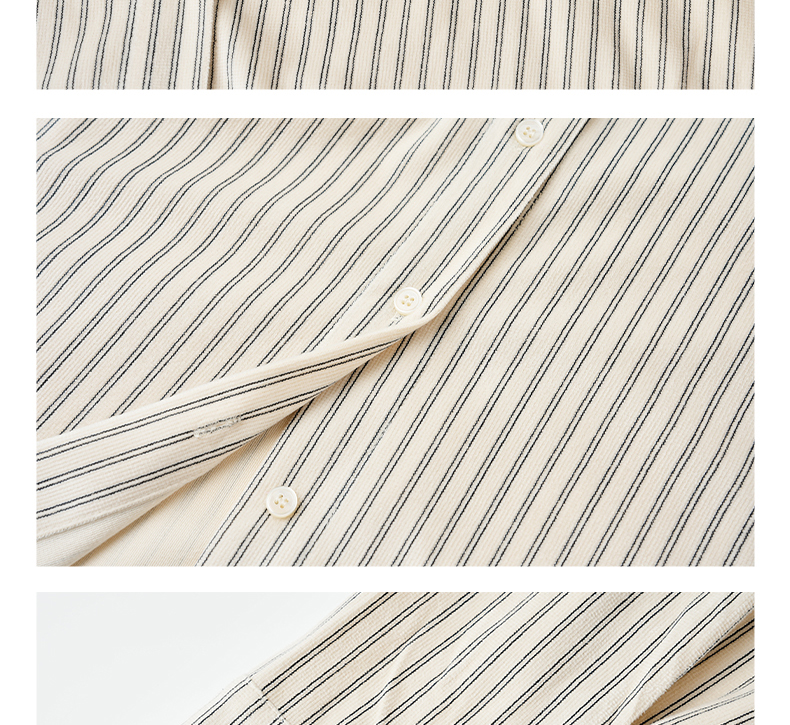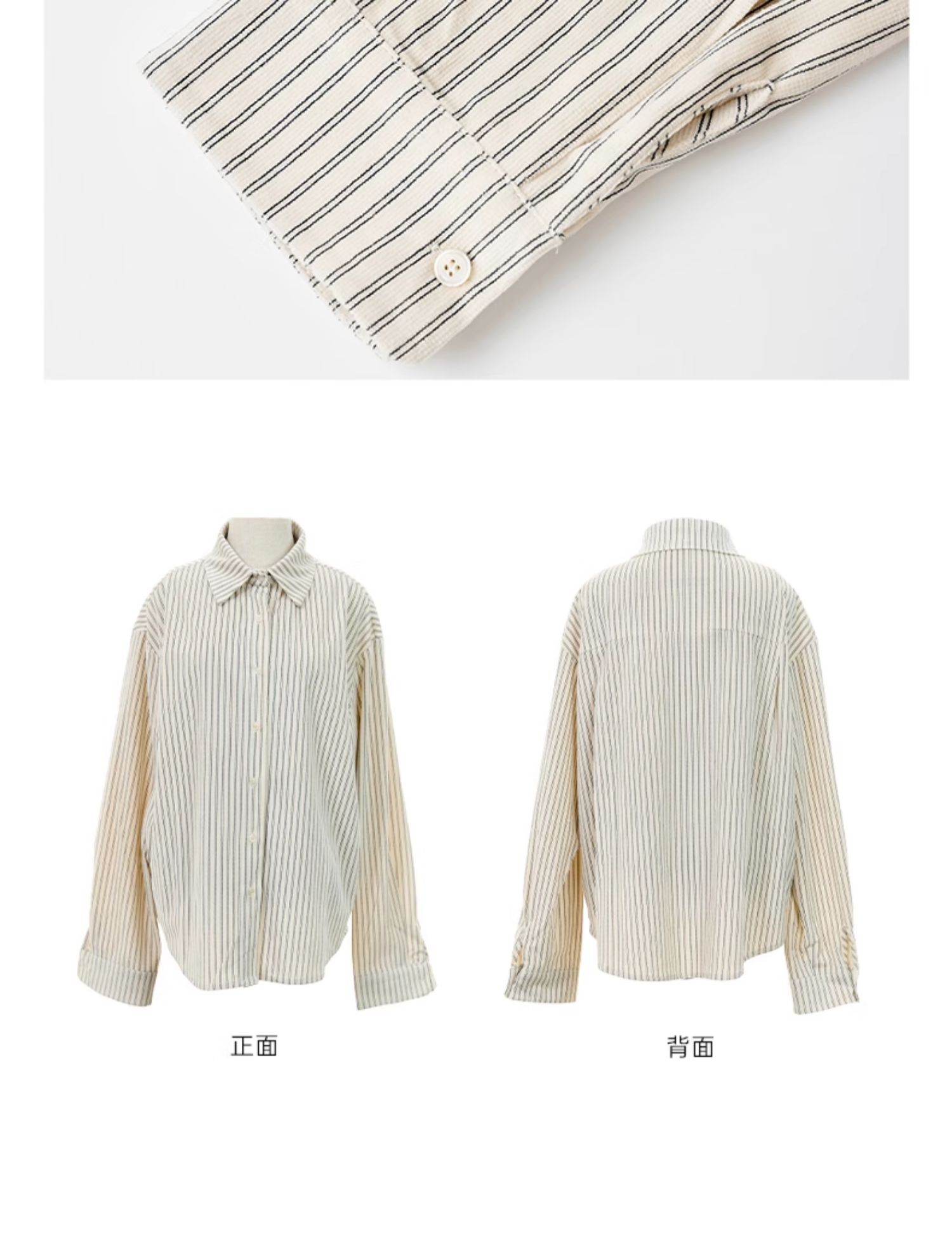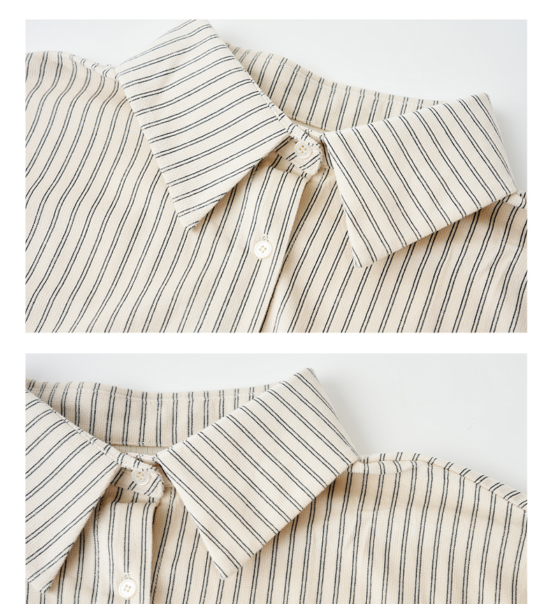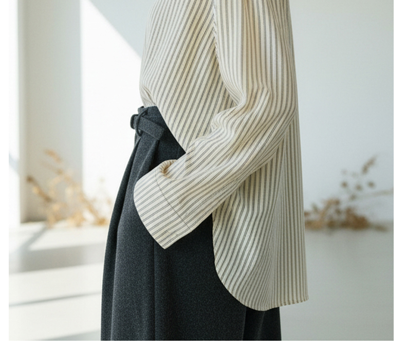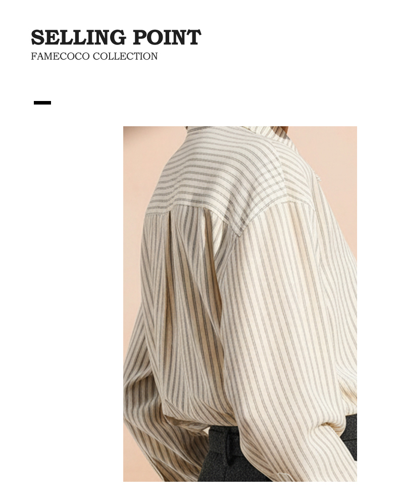 Famecoco范可儿商务通勤翻领条纹衬衫宽松简约落肩衬衣FAD8BH109