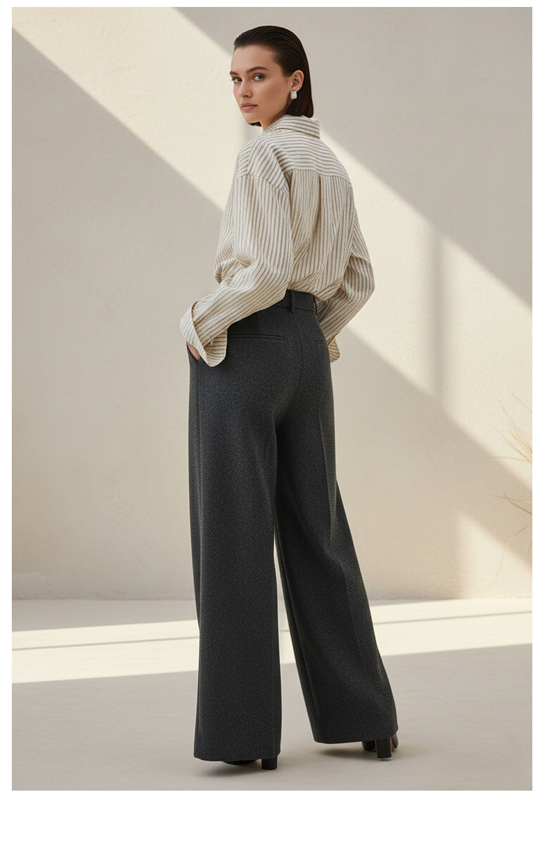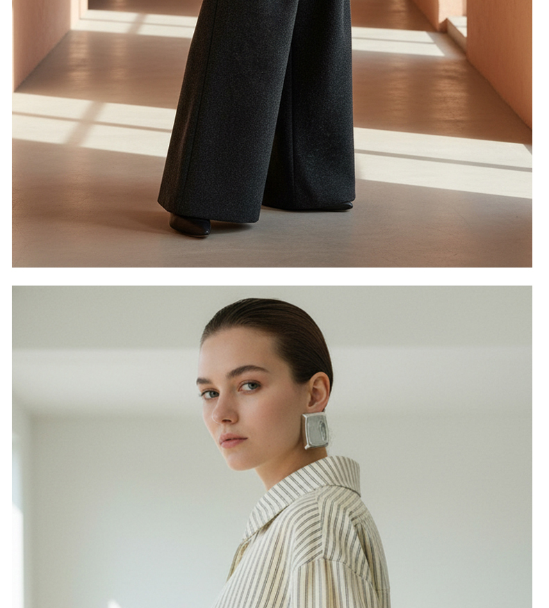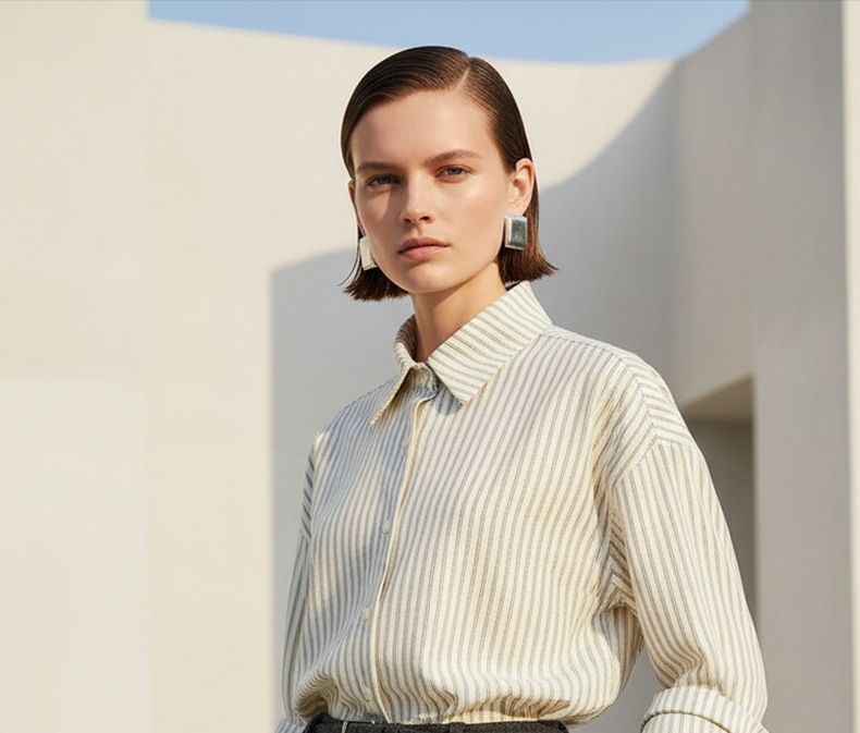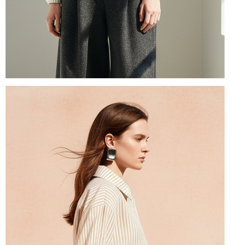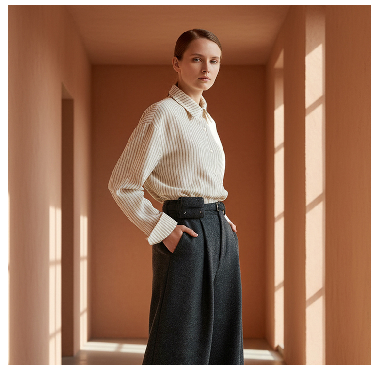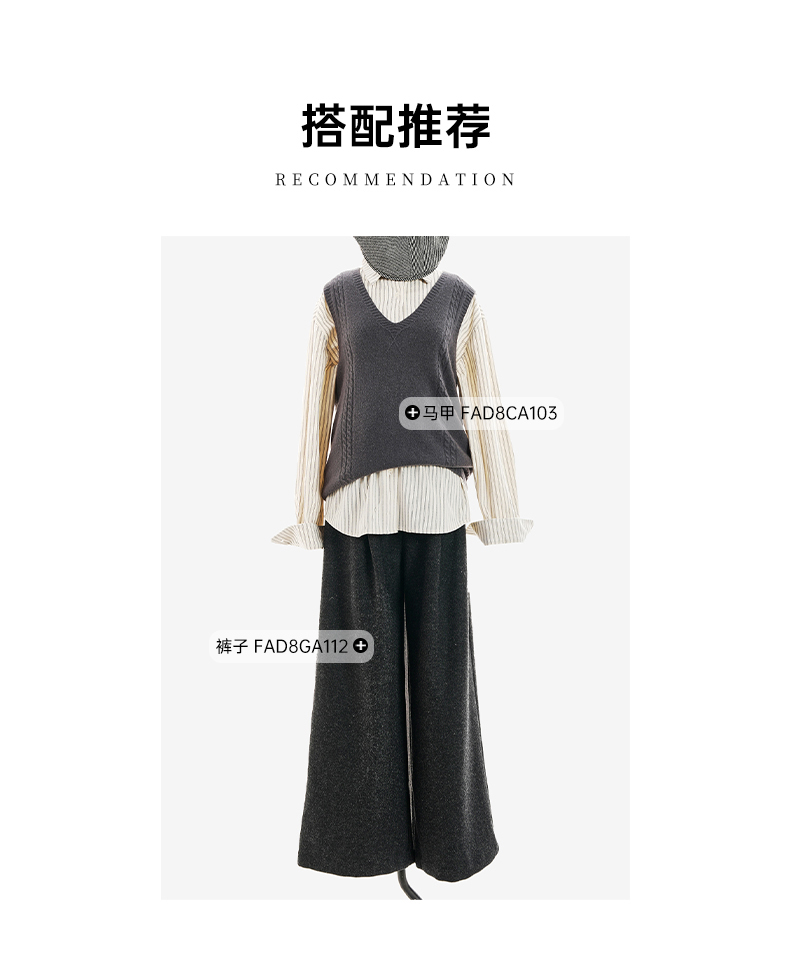 Famecoco范可儿商务通勤翻领条纹衬衫宽松简约落肩衬衣FAD8BH109