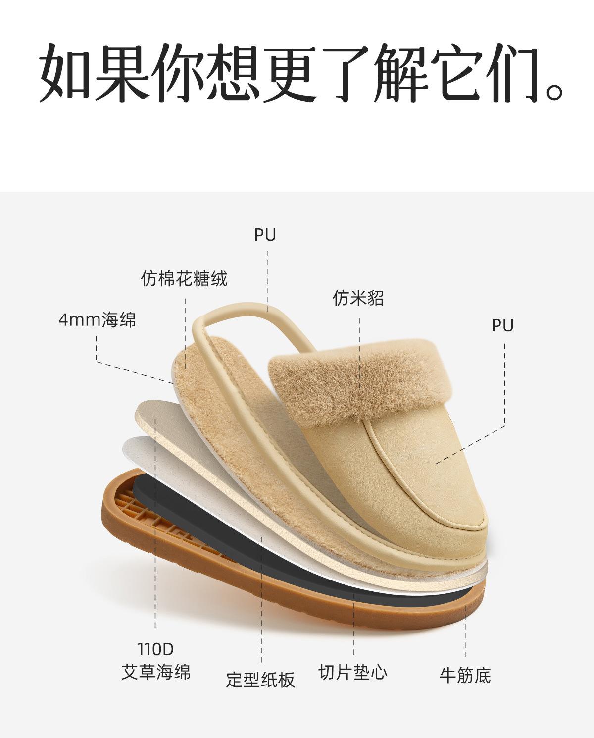 远港2025新款棉拖鞋女秋冬季居家室内保暖牛筋底毛绒防水皮拖鞋男