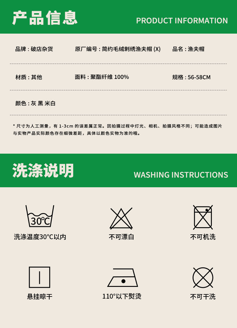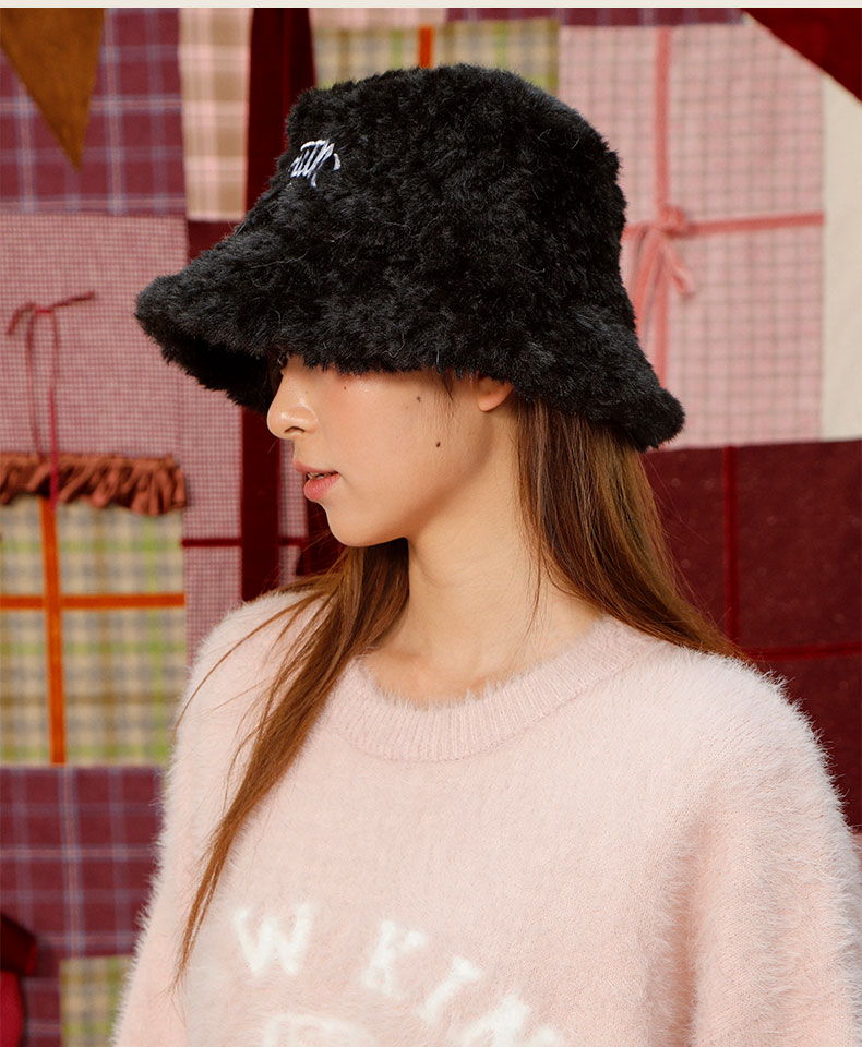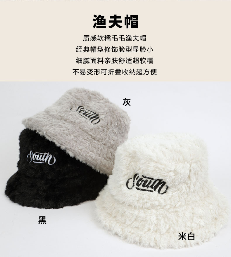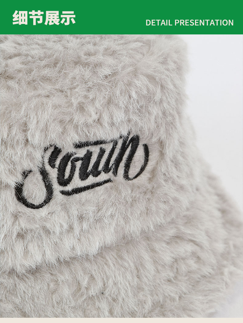 简约毛绒刺绣软糯渔夫帽-纪念日百货门店同款165201134