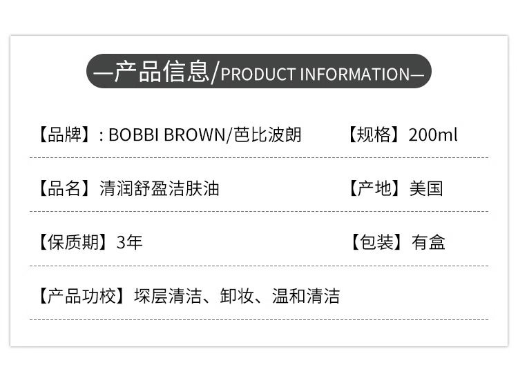 【临期清仓! 效期至2026年11月】老版BOBBI BROWN芭比布朗波朗清润舒盈水感洁肤卸妆油200ml深层清洁,触水即化,温和卸除彩妆与油脂。不油腻、不闷痘