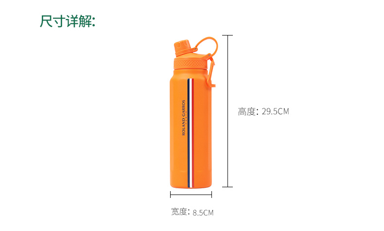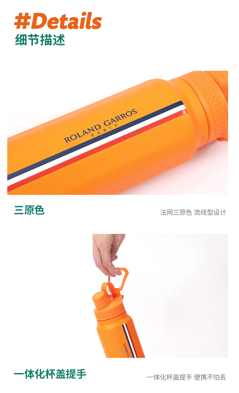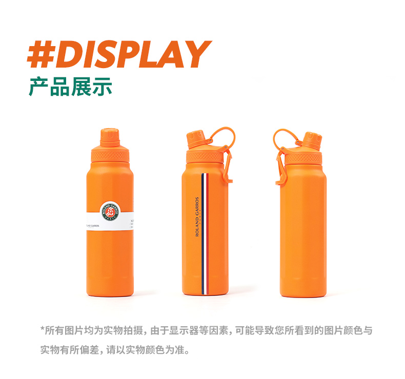 罗兰加洛斯法网周边保温杯网球运动1000毫升大容量水壶便携式男女水杯