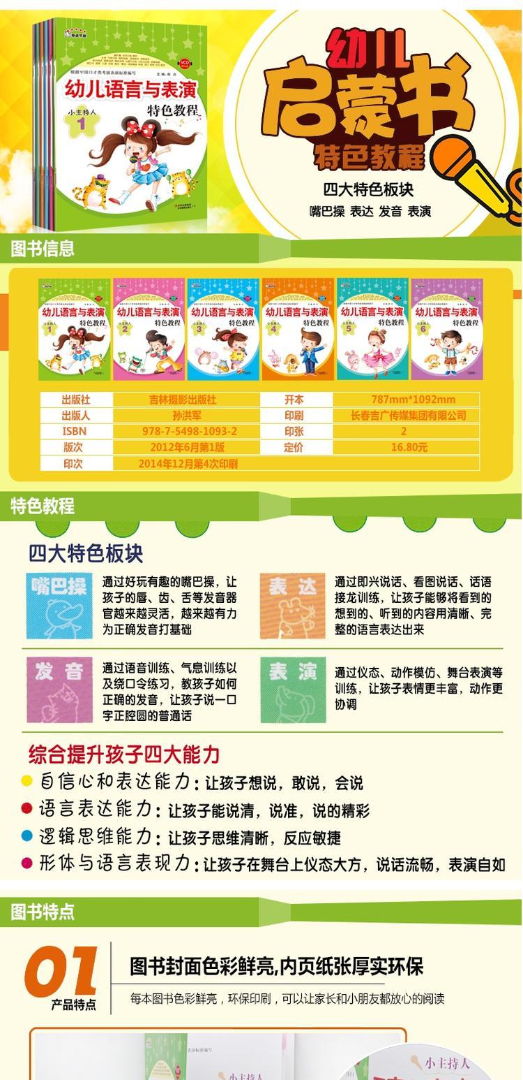 3-6-9岁儿童潜能开发幼儿学前启蒙早教书 小主持人(附光盘6幼儿语言与表演特色教程) 学前班幼儿园书籍教材能力培养幼小衔接训练书