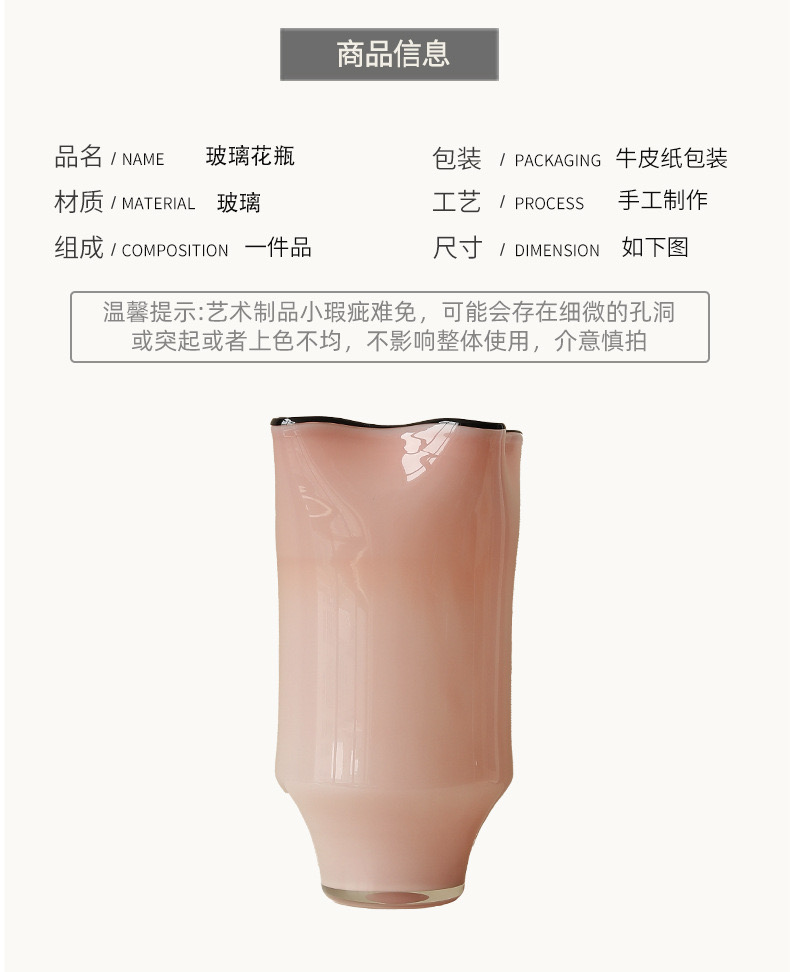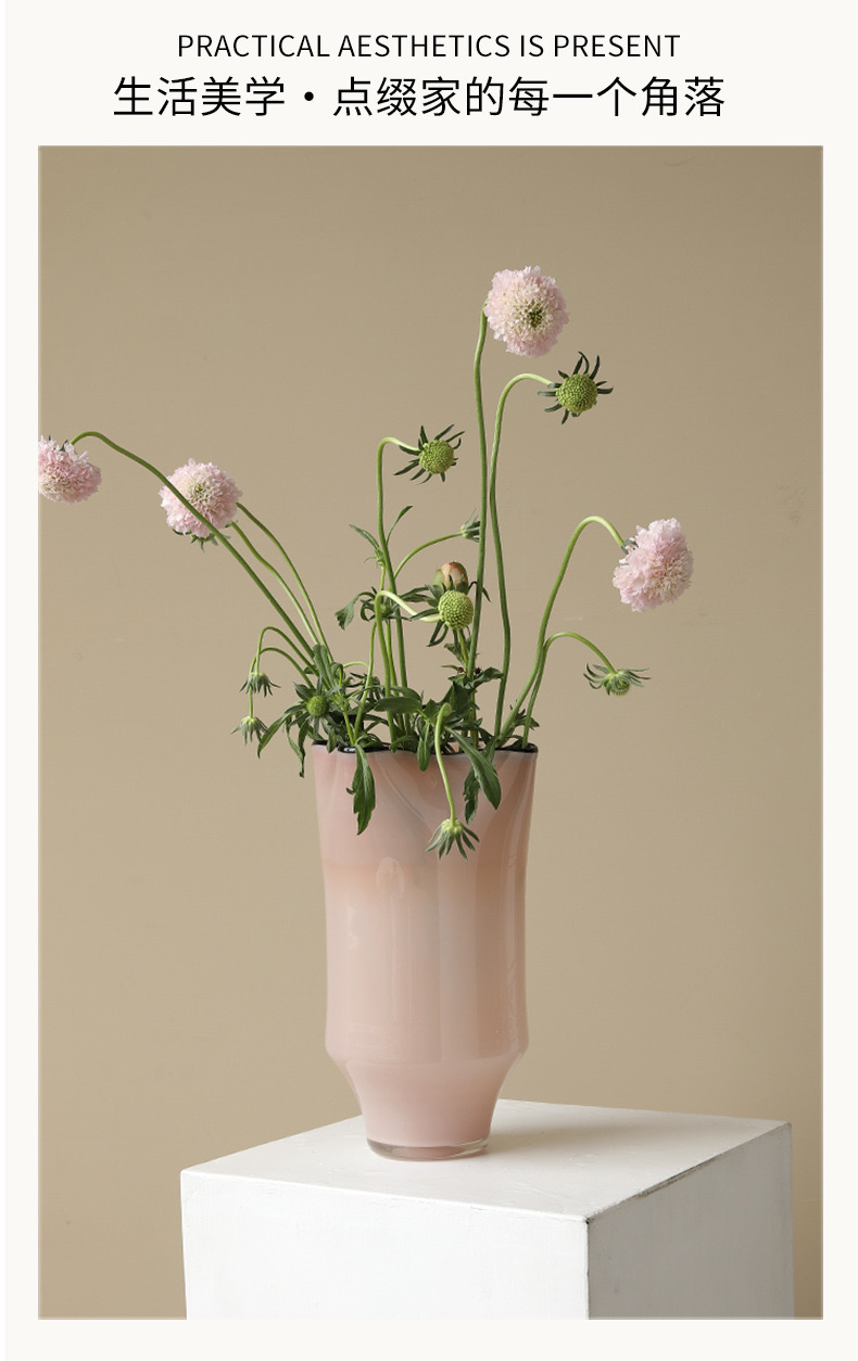 【旖旎】简小姐精选 法式中古花瓶玻璃花瓶 粉色高级复古感 客厅卧室家居饰品 下单7天发货