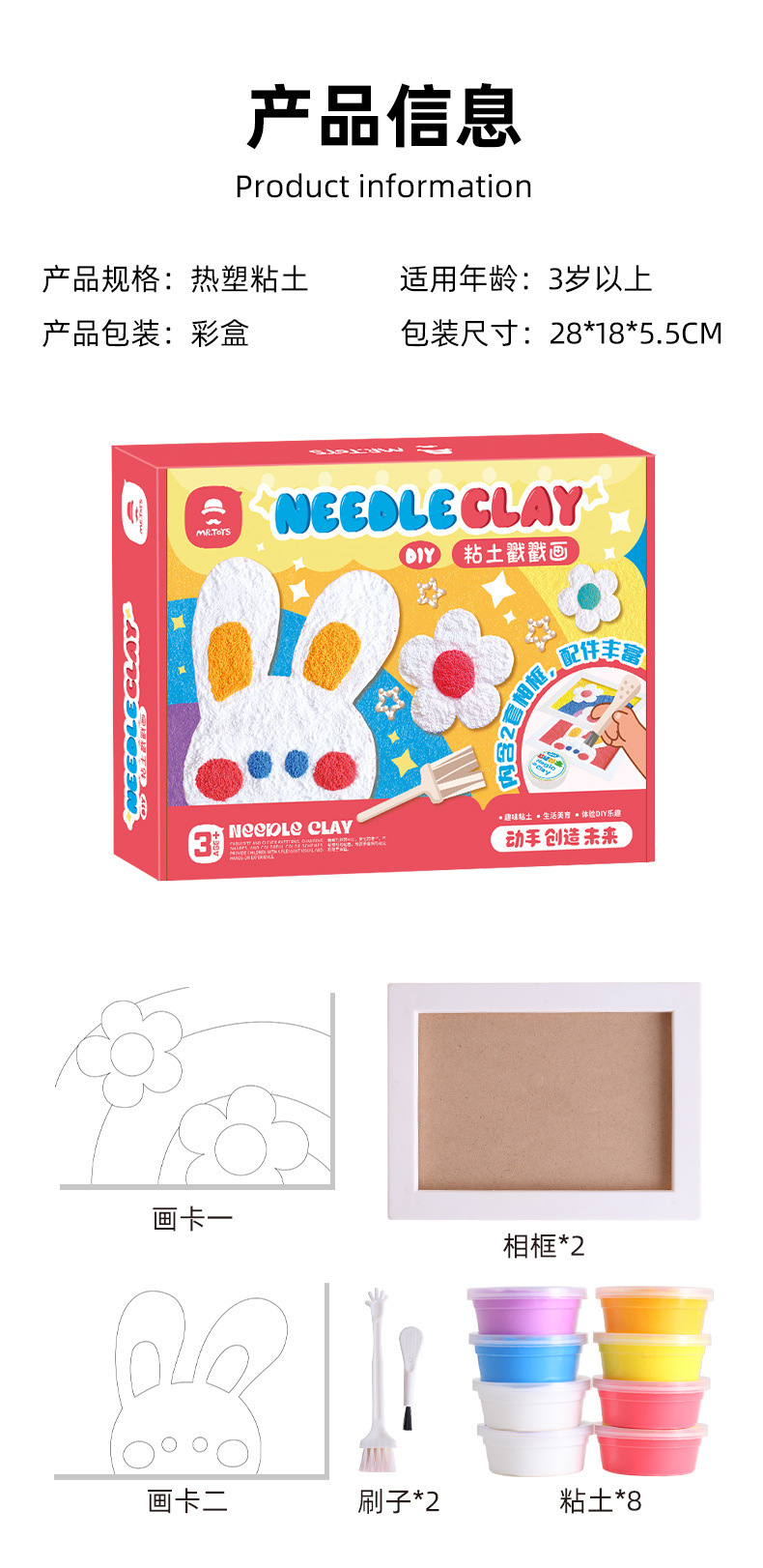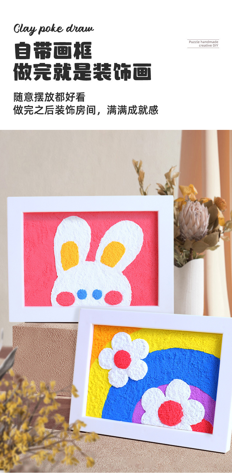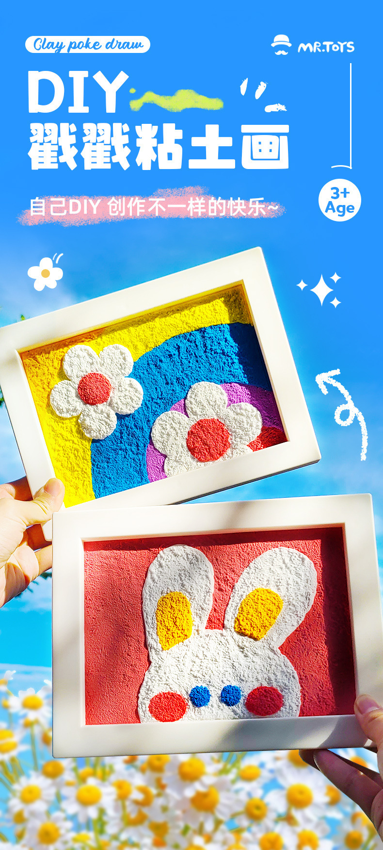 玩具先生粘土戳戳画材料包儿童手工diy画益智玩具女孩相框画3-6岁