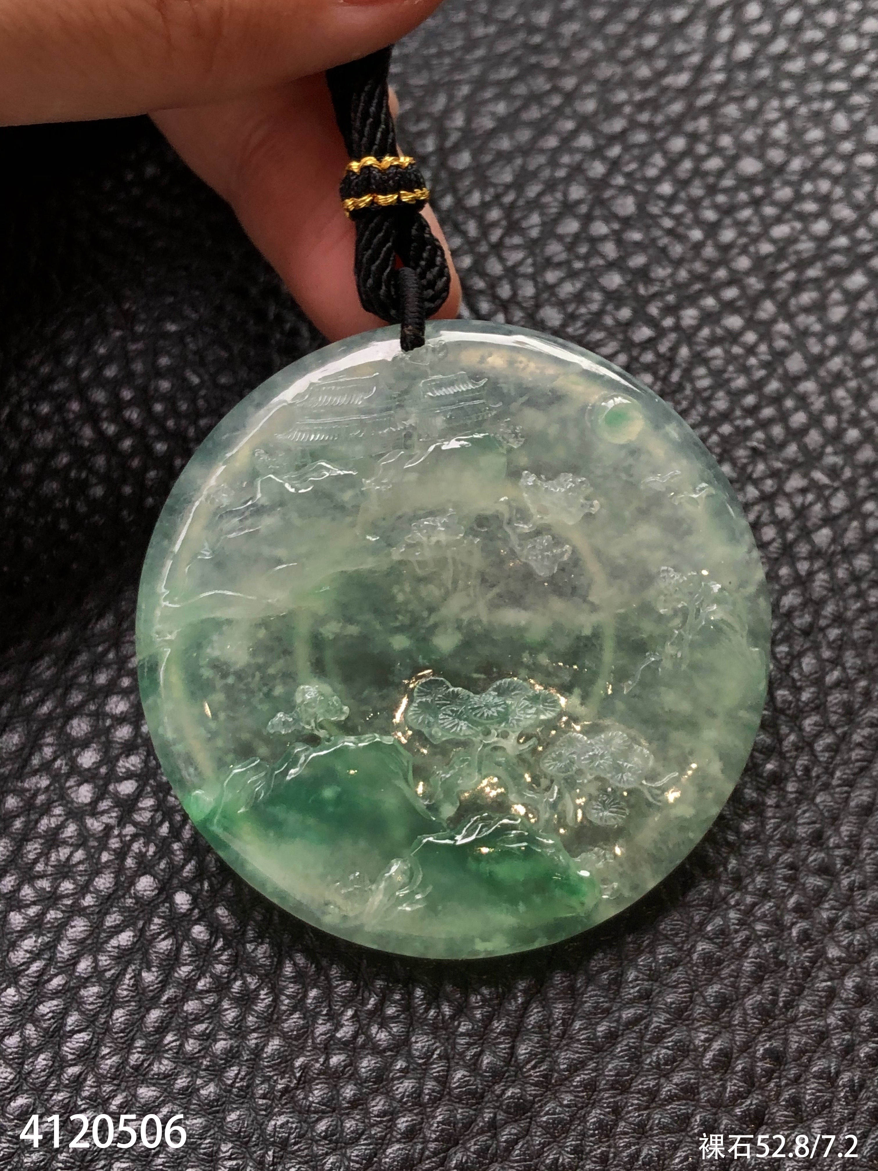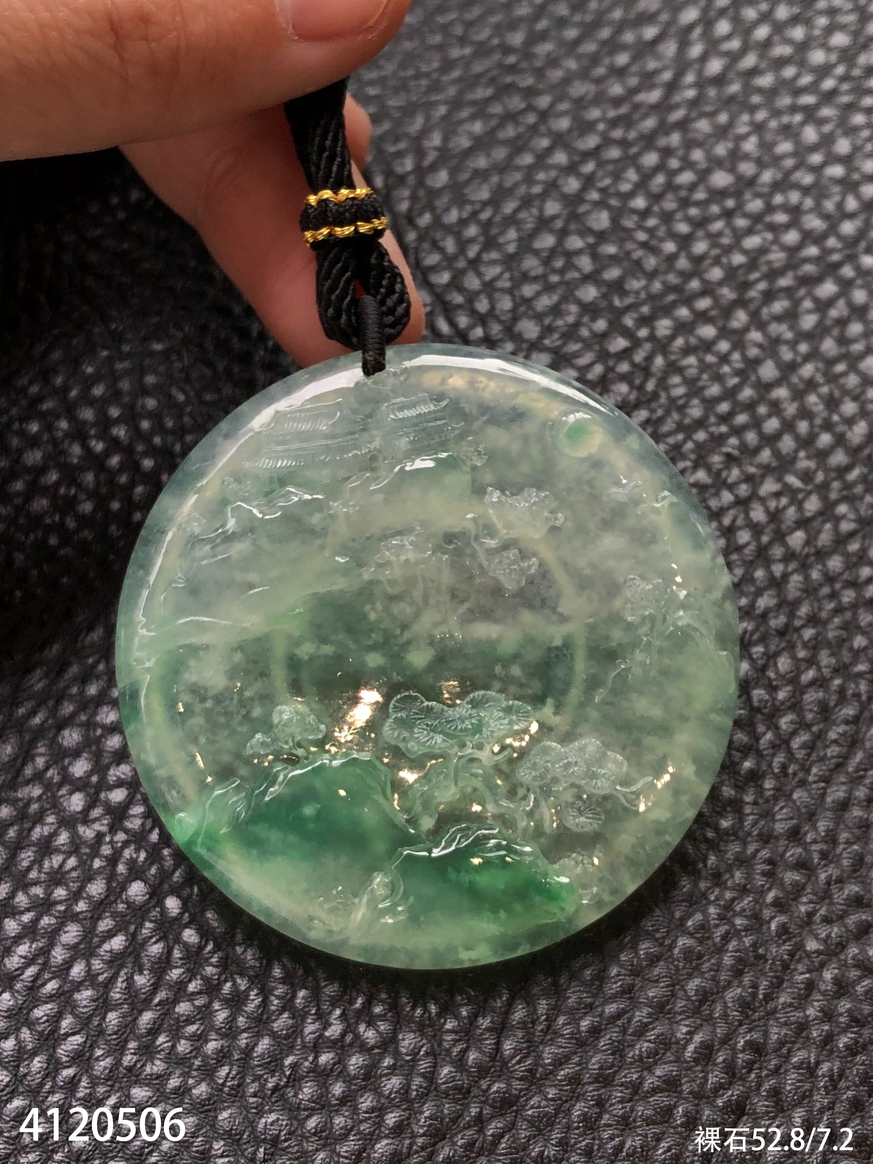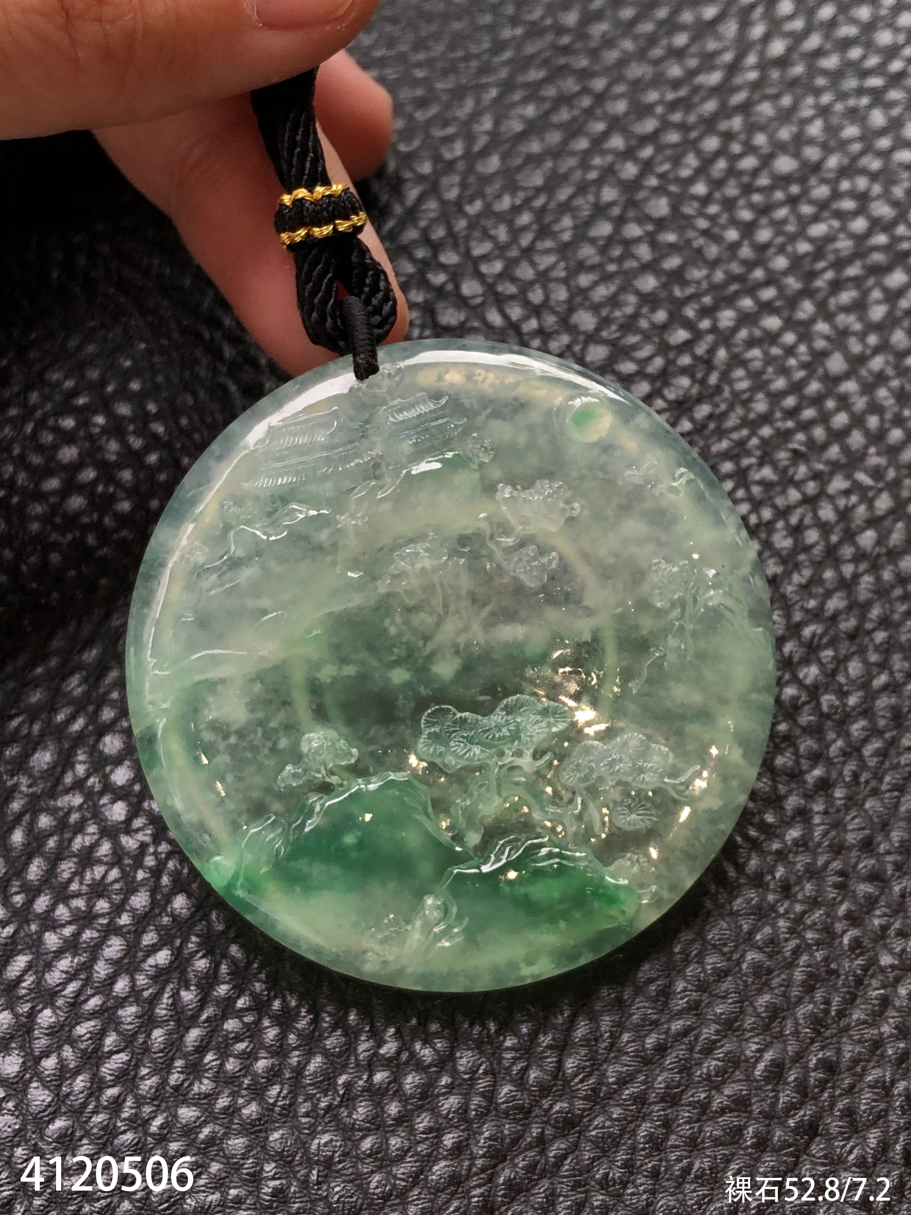 冰飘翠山水圆牌挂坠【4120506】具体价格微信咨询