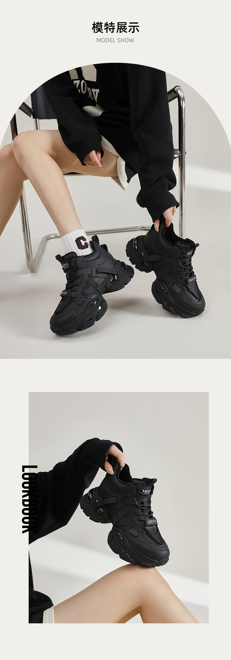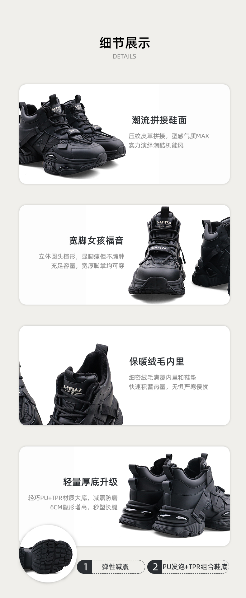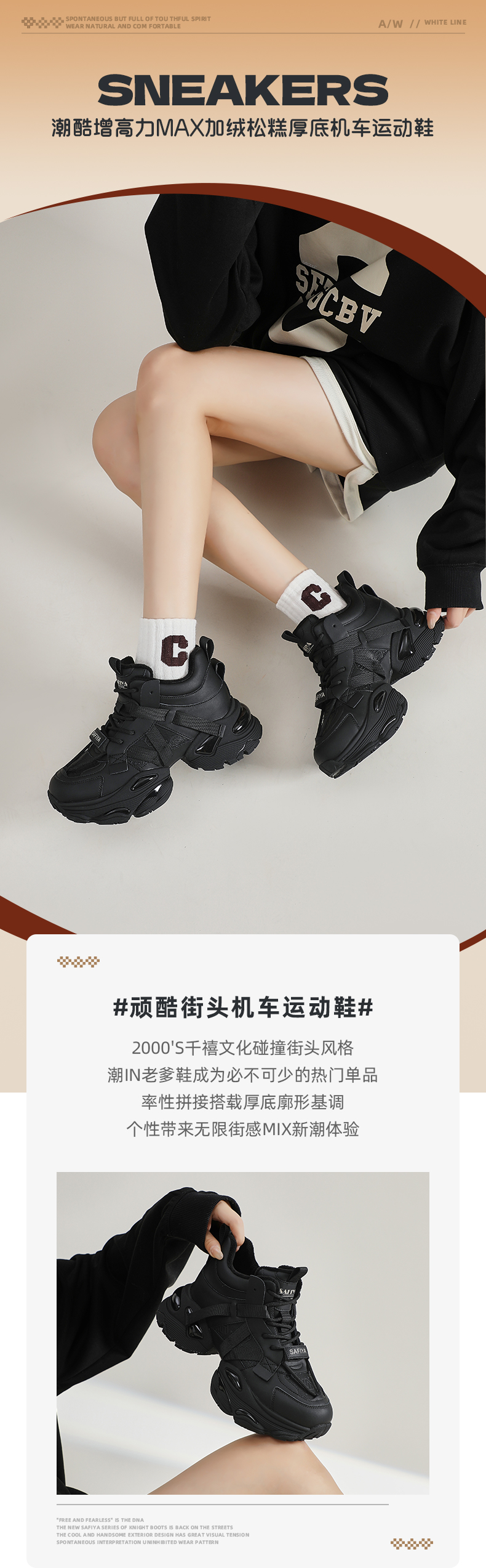 Safiya/索菲娅2023秋冬潮酷增高力MAX加绒松糕厚底机车运动鞋 SF34112403