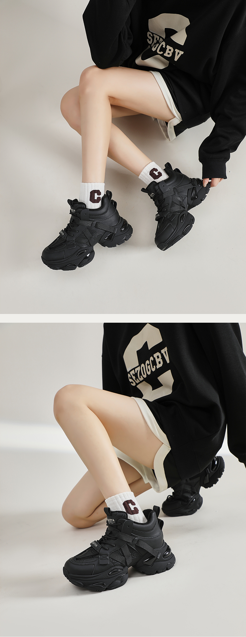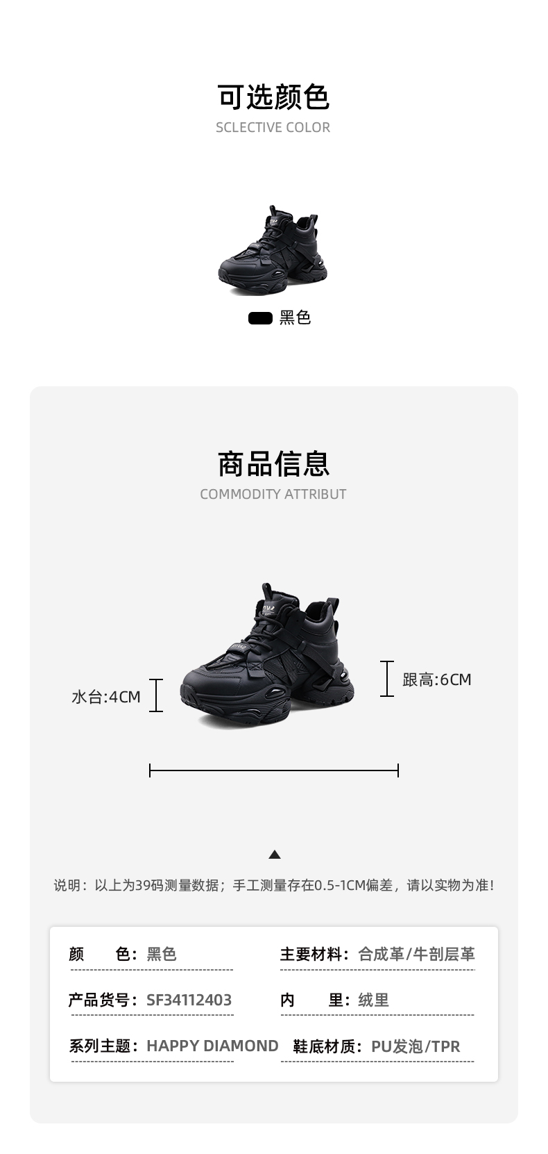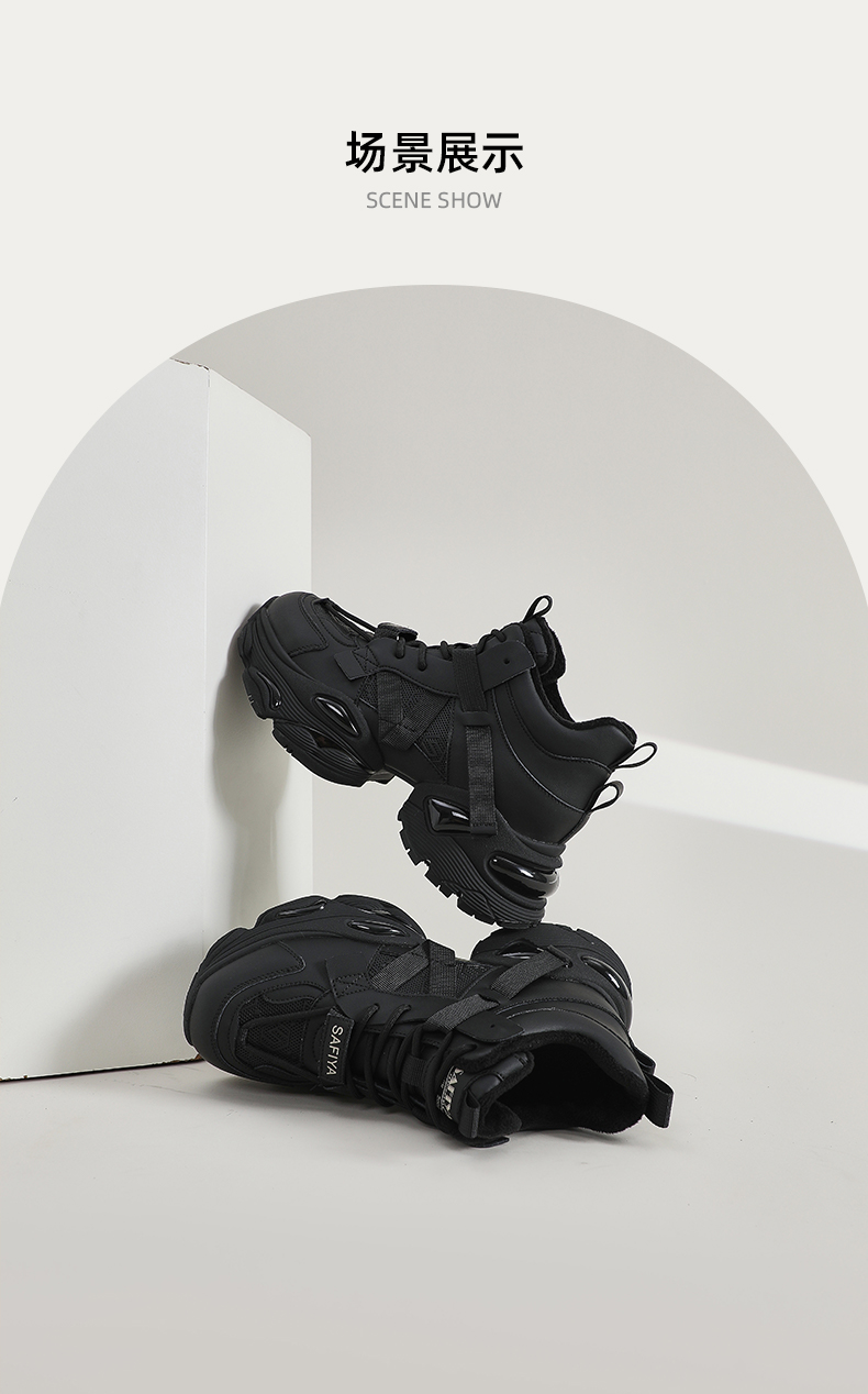 Safiya/索菲娅2023秋冬潮酷增高力MAX加绒松糕厚底机车运动鞋 SF34112403