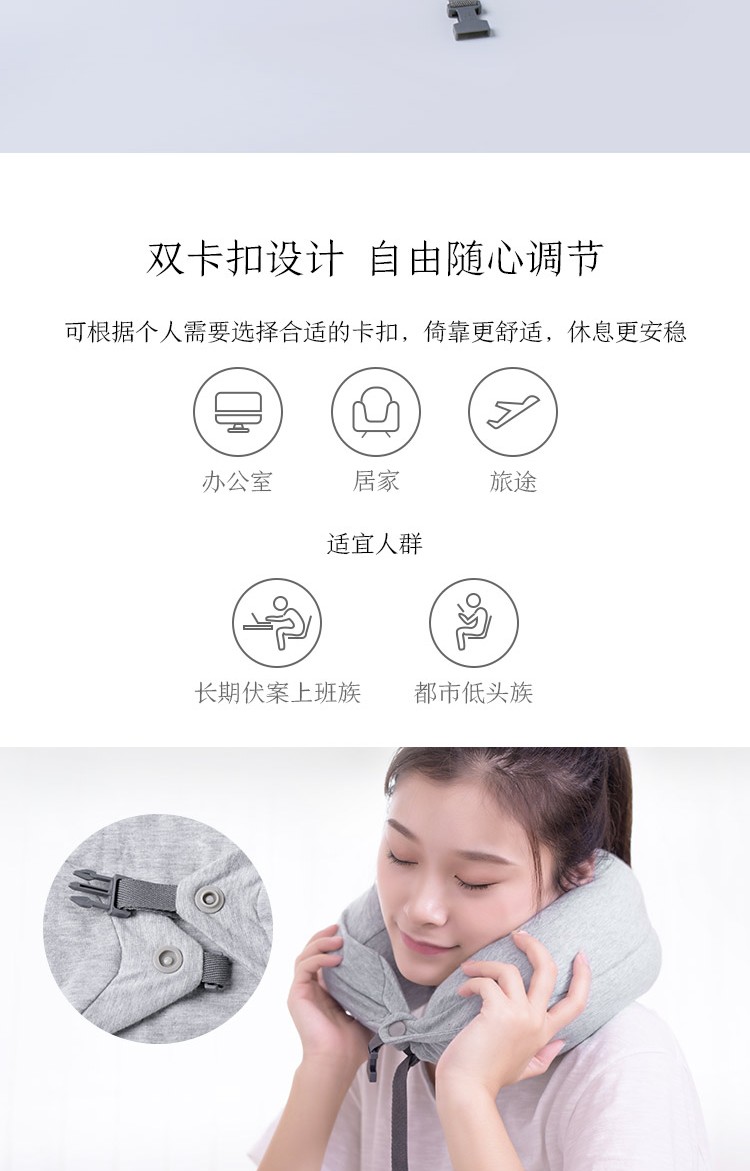 京东京造 泰国天然乳胶颗粒U型枕 纯棉面料多功能颈枕乳胶枕 旅行枕 深灰色