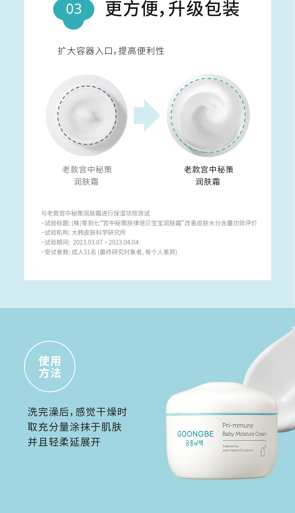 【新包装】宫中秘策Goongbe肤律倍贝润肤霜180ml婴儿面霜润肤露平衡面霜