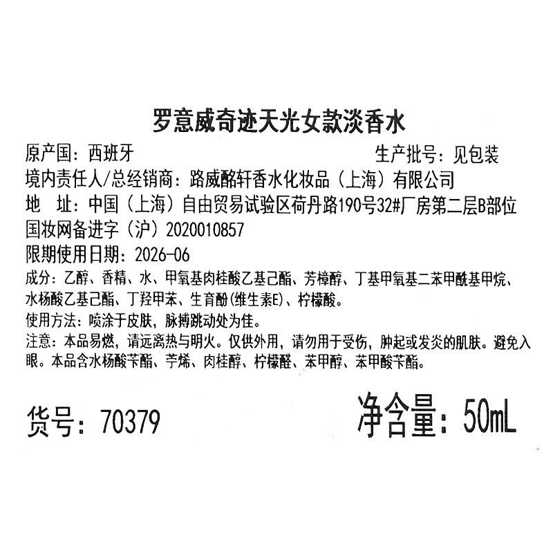 LOEWE/罗意威奇迹天光女士EDT淡香水50ml/75ml 香氛清新淡雅持久留香明媚花果香