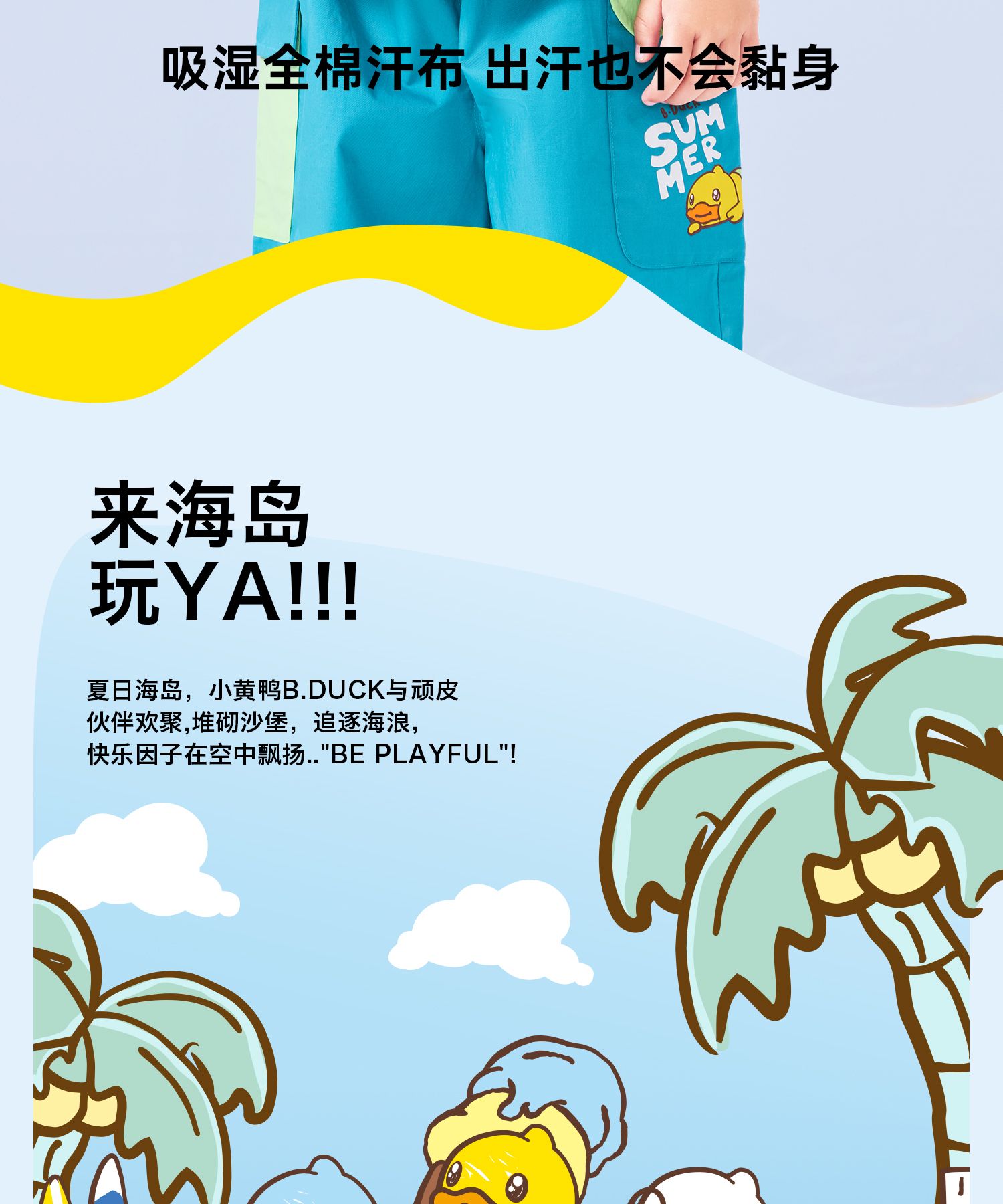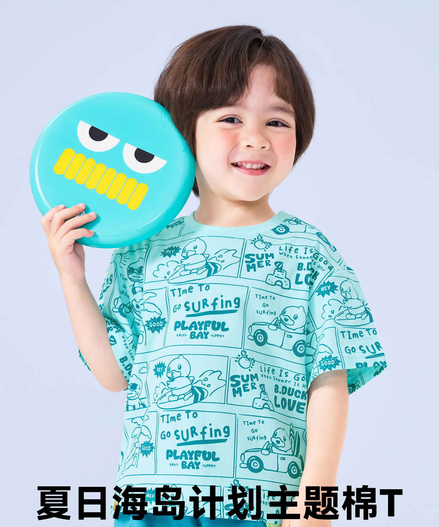 bduck小黄鸭童装夏季男童短袖t恤儿童上衣纯棉宝宝半袖夏装潮90-130 BF2601075