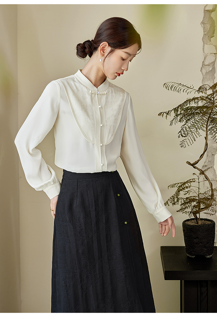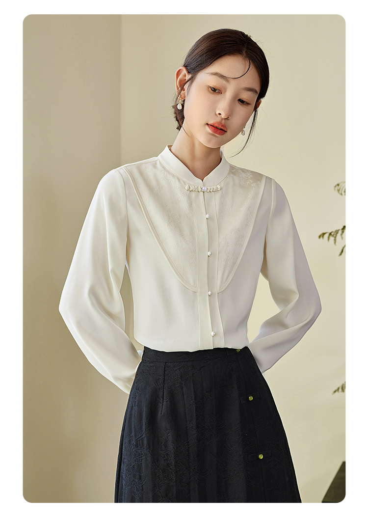 【年终特卖】熙世界仙气白色新中式衬衫2025秋新款文艺国风盘扣上衣醋酸小衫