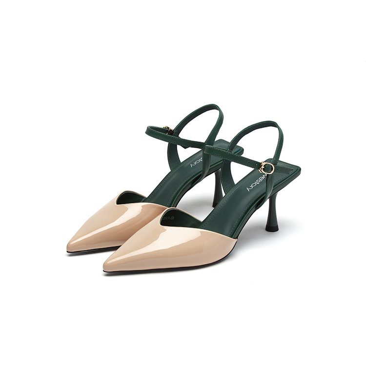 westory女鞋2021年夏季新款尖头包头高跟鞋一字带凉鞋W21AH53691