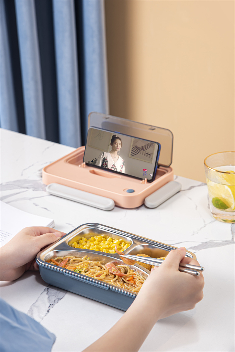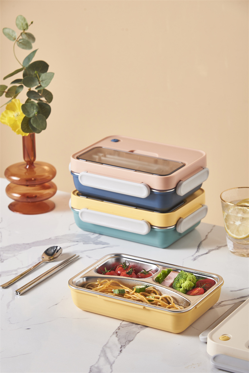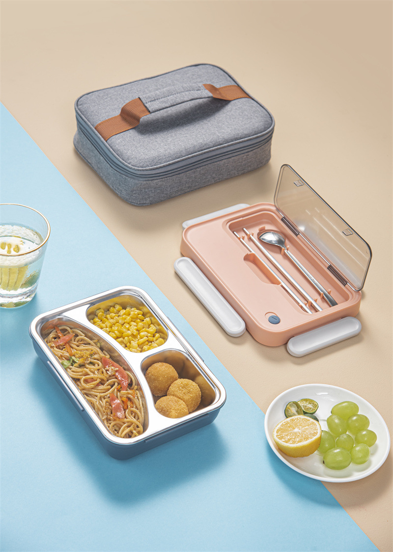 甲克虫大三格饭盒JKC-5721/970ml韩式不锈钢饭盒 学生便携分格便当盒 密封带餐具饭盒