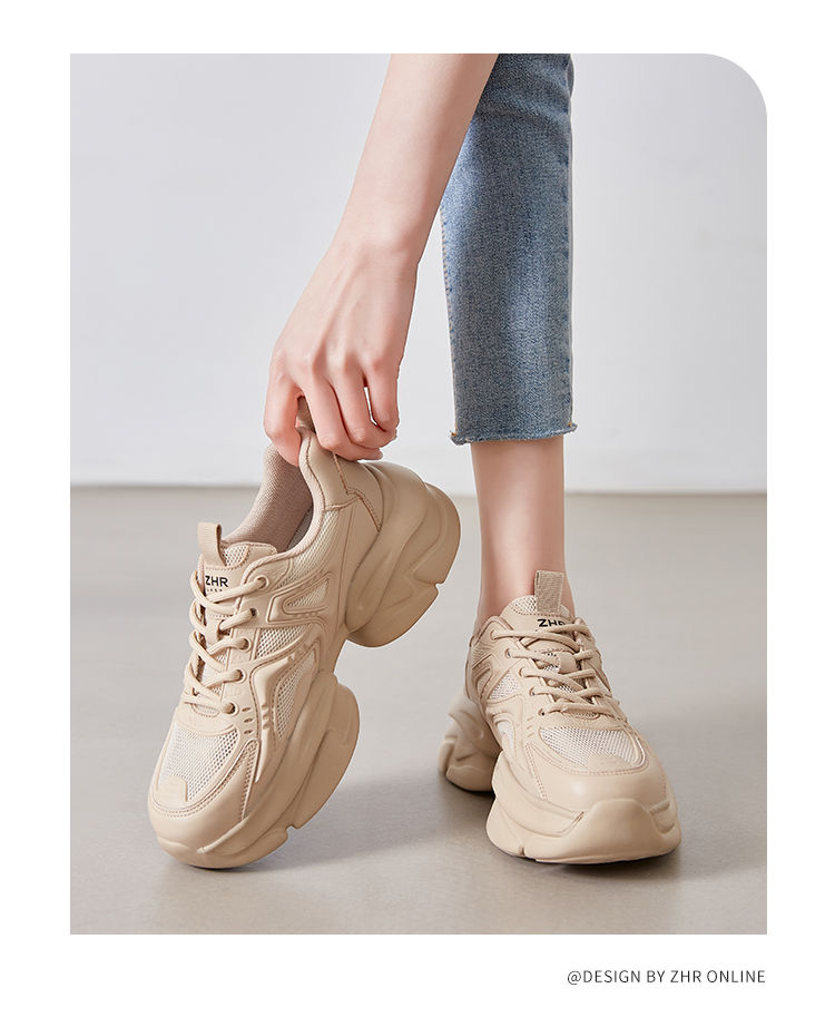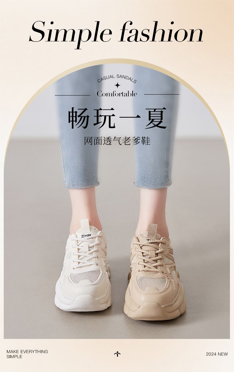 ZHR则则时尚网面透气老爹鞋女鞋2024夏季新款厚底增高运动休闲鞋