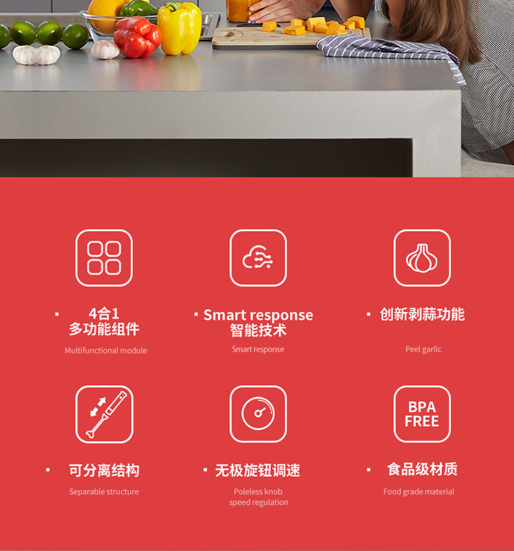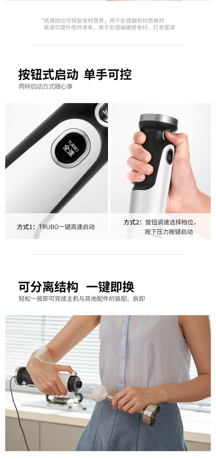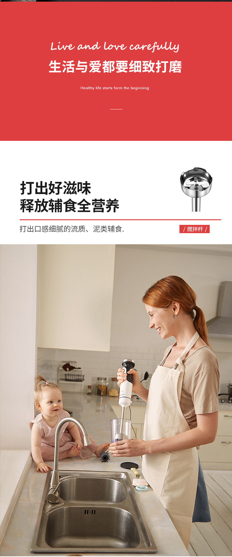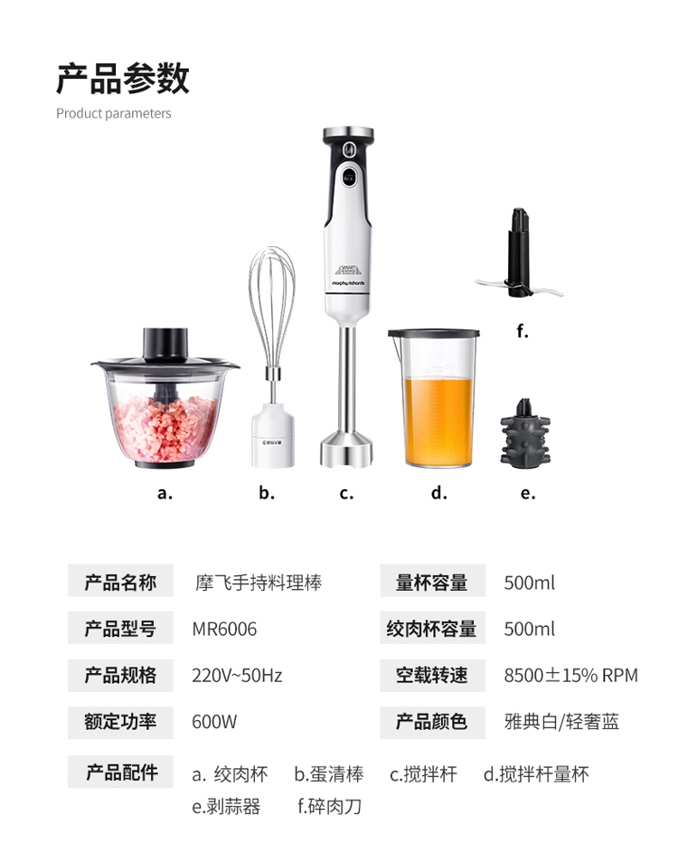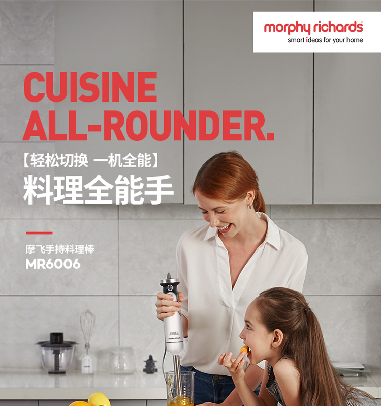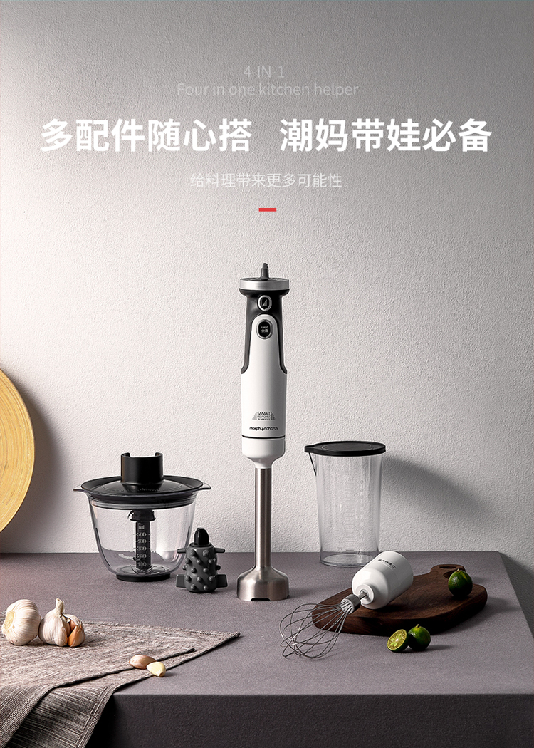 摩飞电器(Morphyrichards)料理机打蛋器家用绞肉机手持式婴儿辅食搅拌机榨汁机料理棒MR6006 白色