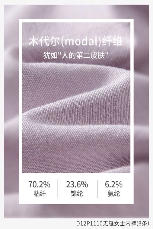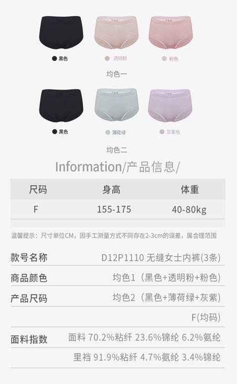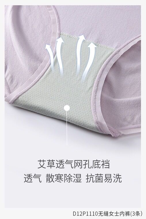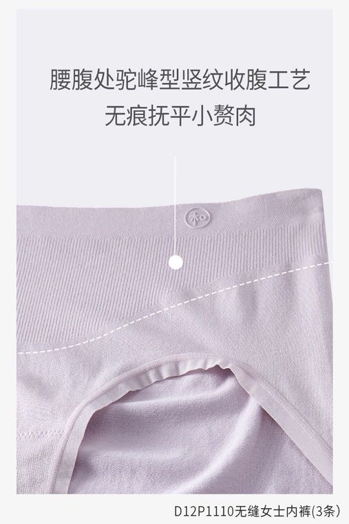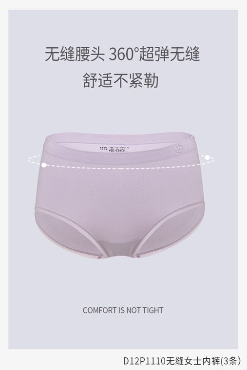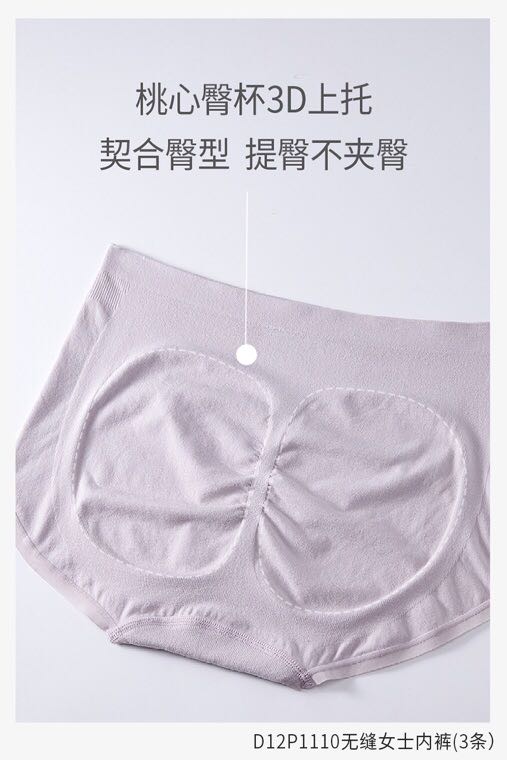 无缝女士内裤 纯棉裤头 3D提臀 一盒3条装 D12P1110