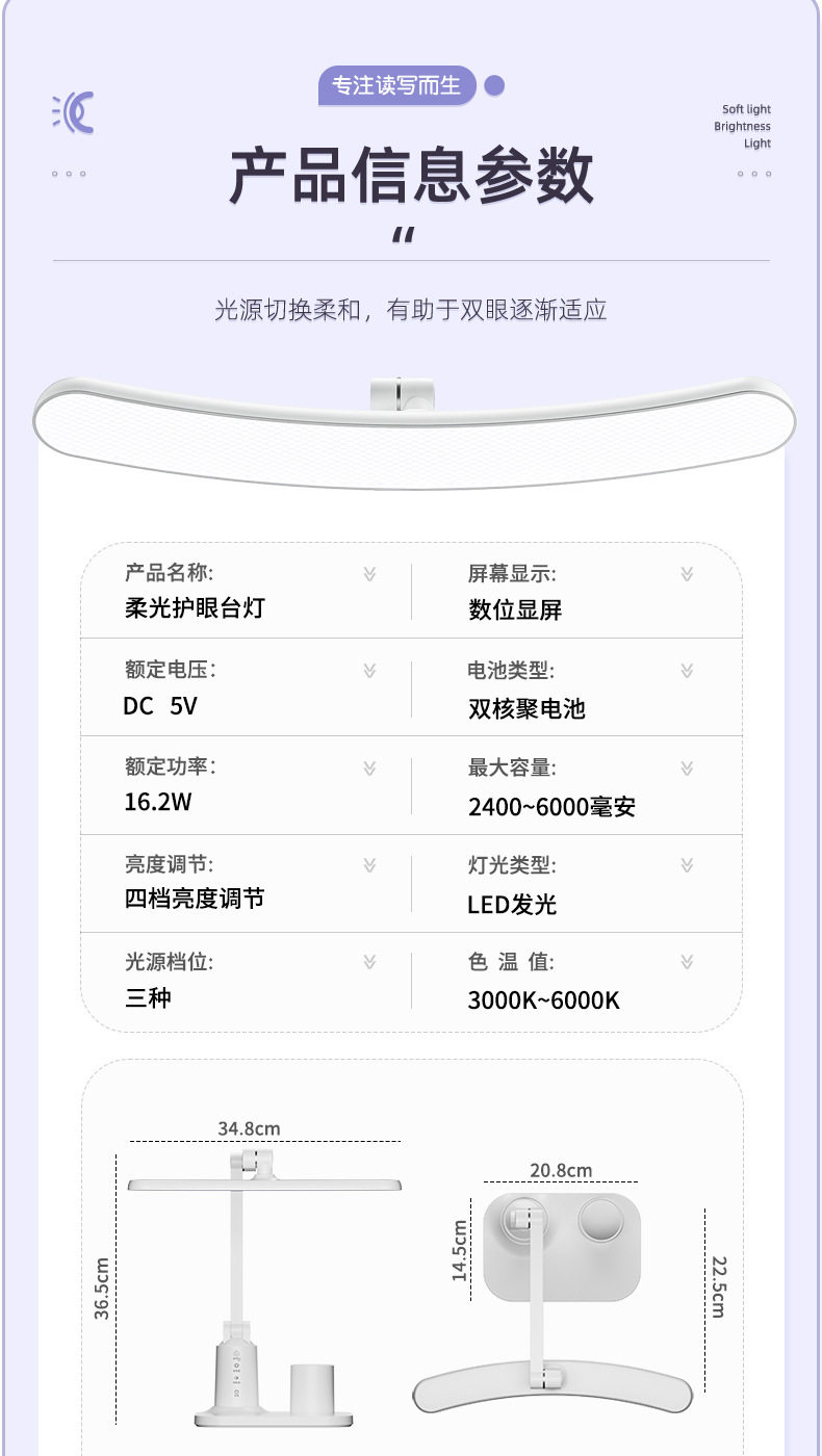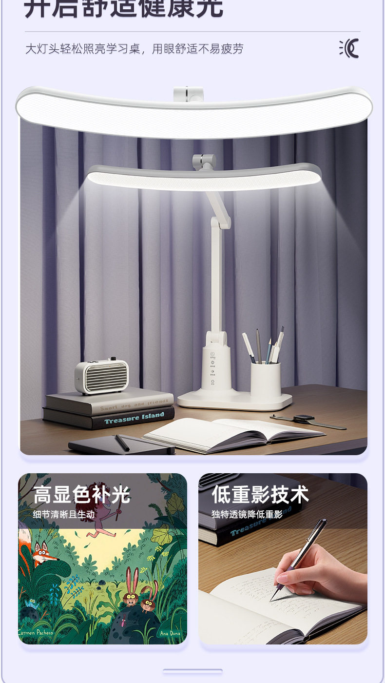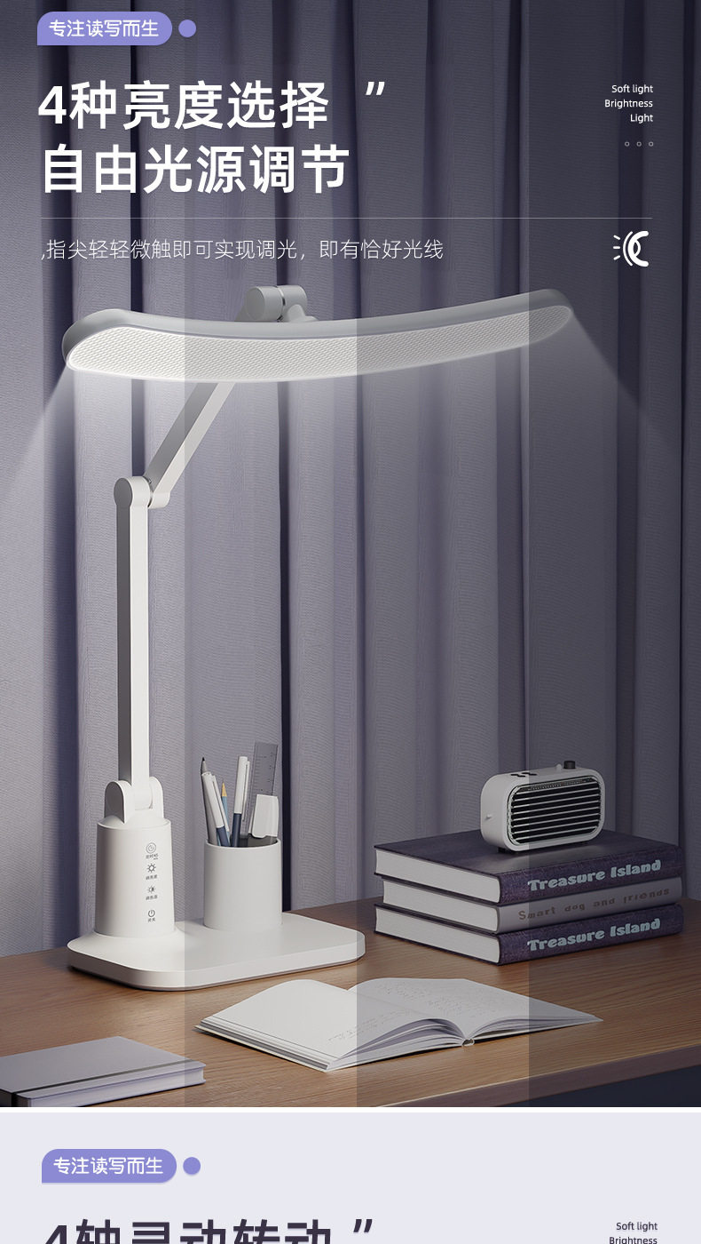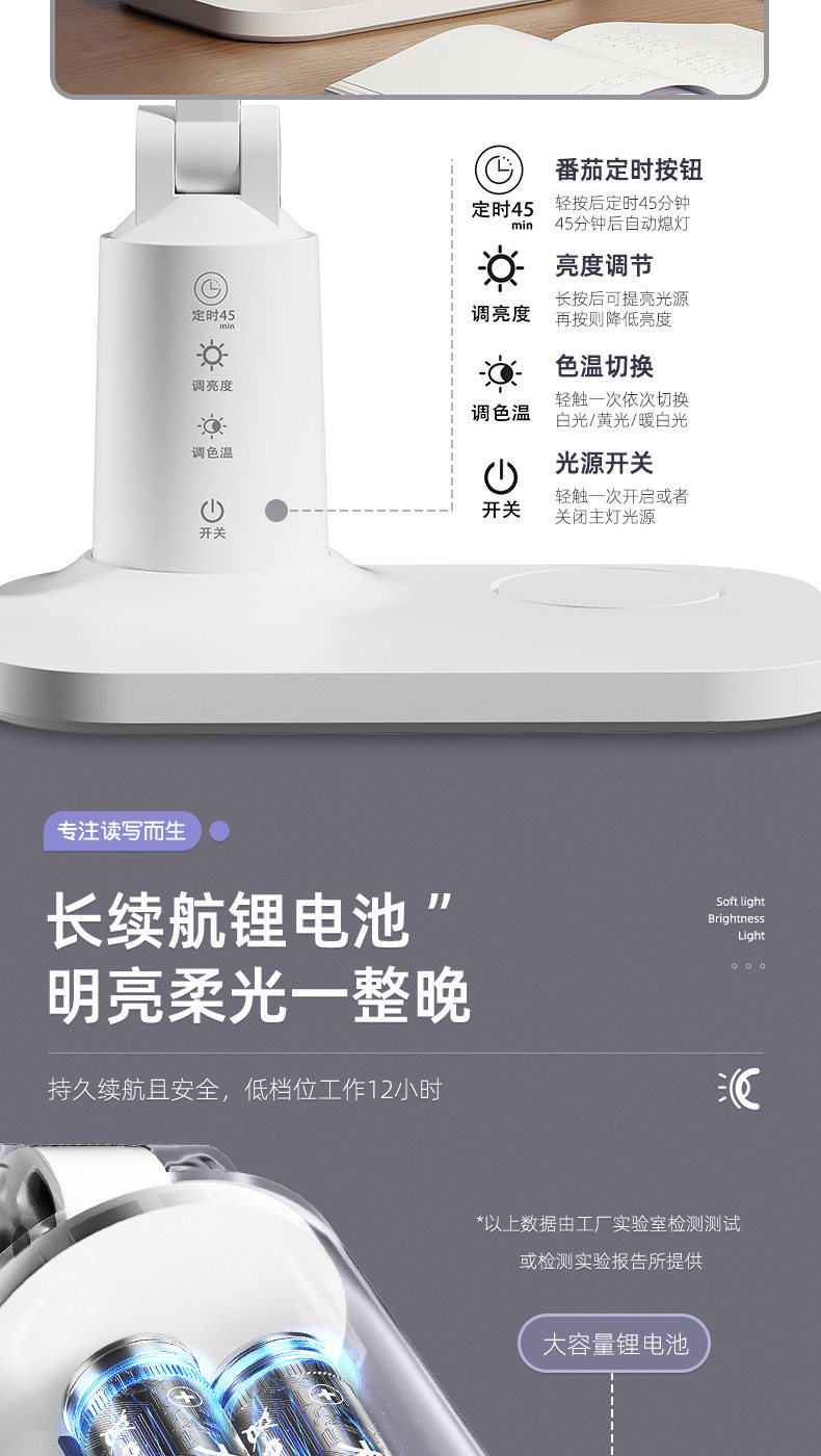 【学习阅读专用灯 防护近视柔光护眼】Led折叠台灯 学生学习护眼 专用阅读灯 宿舍充电床头灯 卧室定时夜灯