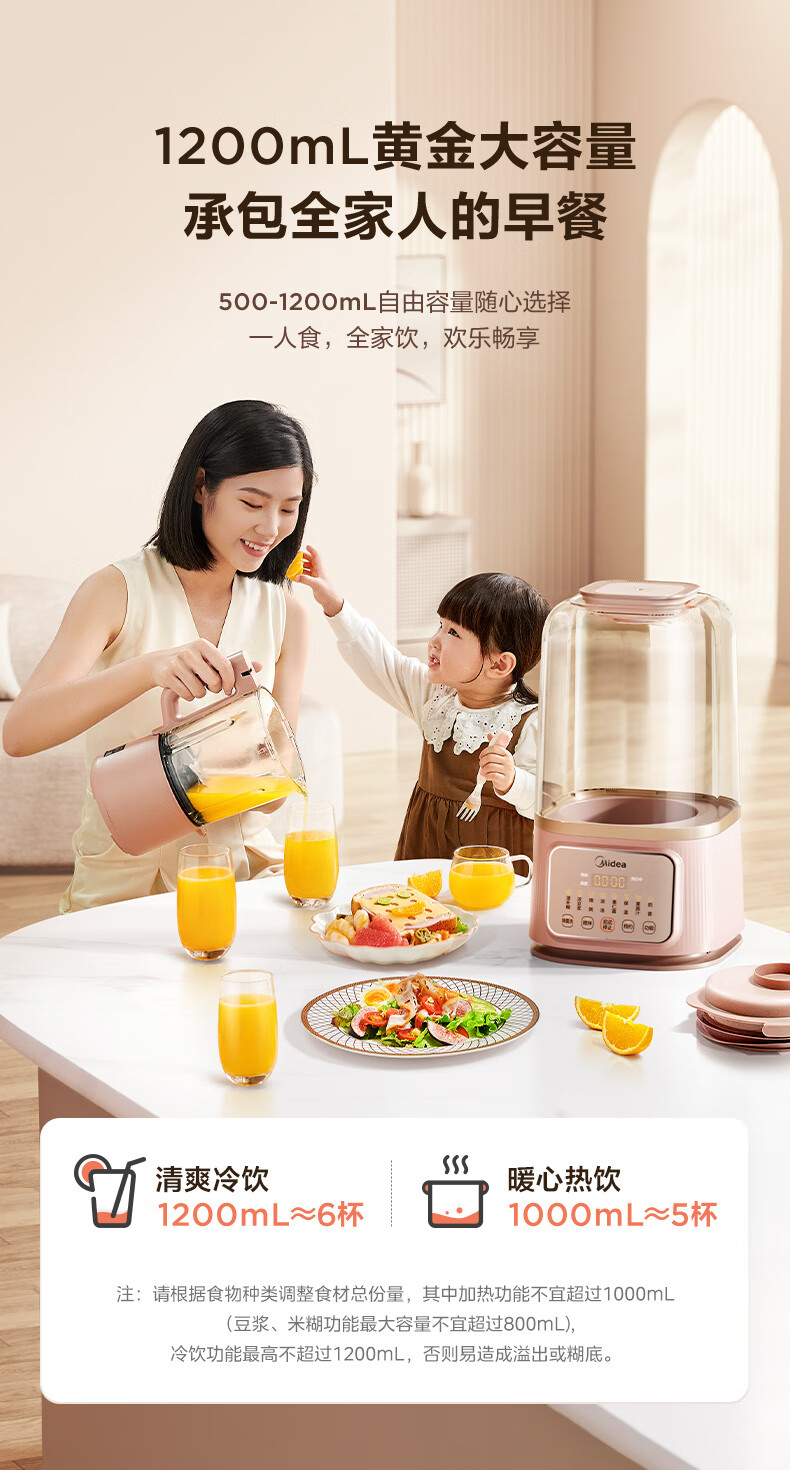 美的 MJ-PB80S2 低音破壁机安睡升级43dB降噪静柔音破壁豆浆机辅食料理榨汁机(原价)