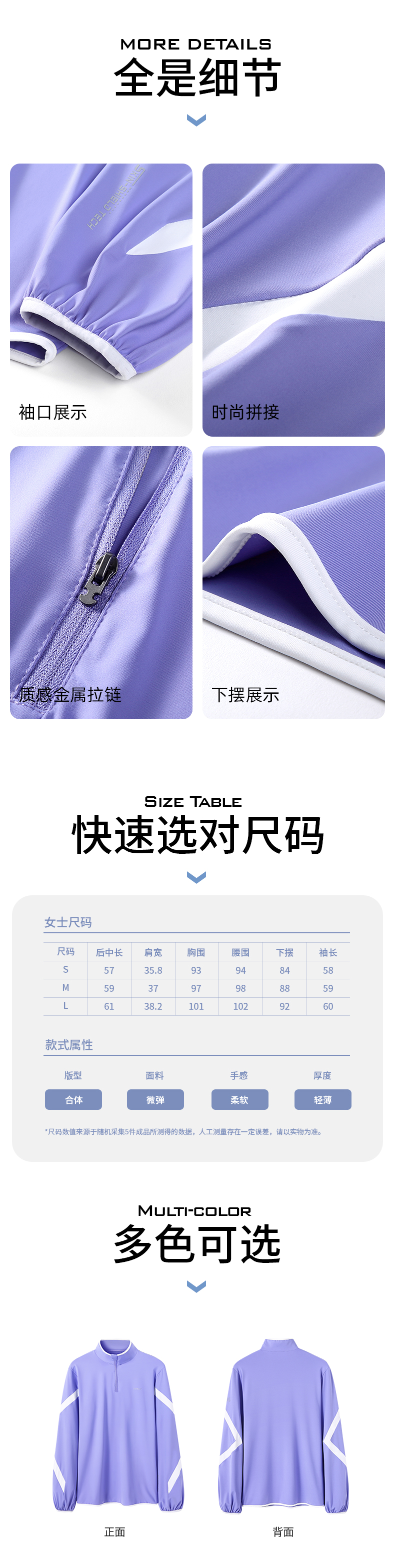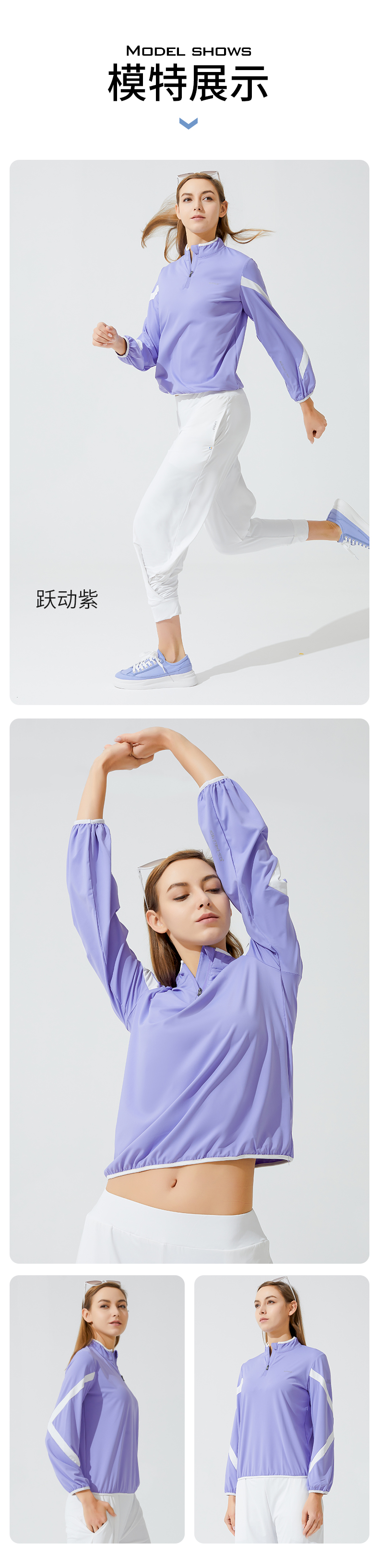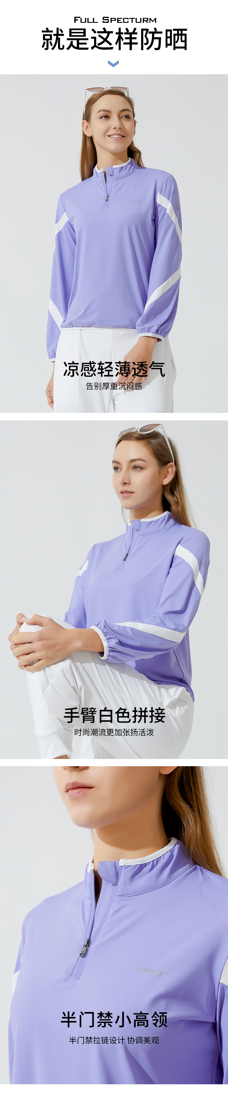 Supield素湃运动款防晒衣女夏季薄款防紫外线立领护颈紫色防晒服