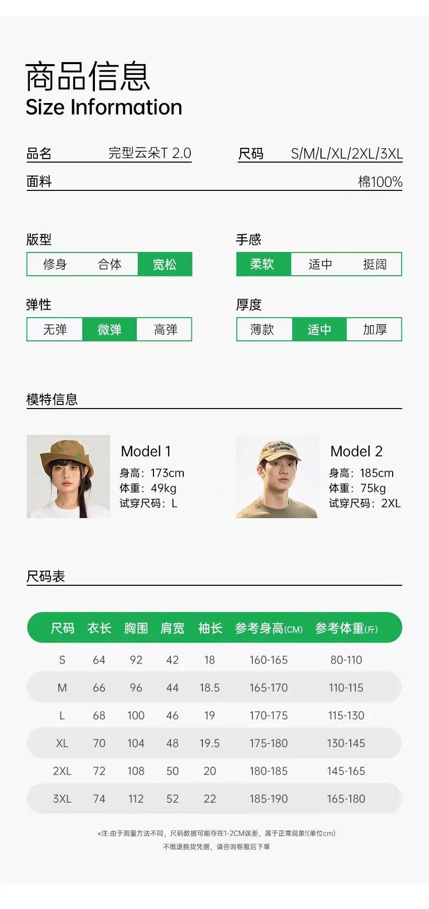 【三件装】完型云朵短袖T恤2.0 新疆棉透气防晒休闲运动户外夏季圆领纯色打底上衣情侣款