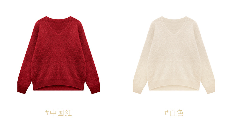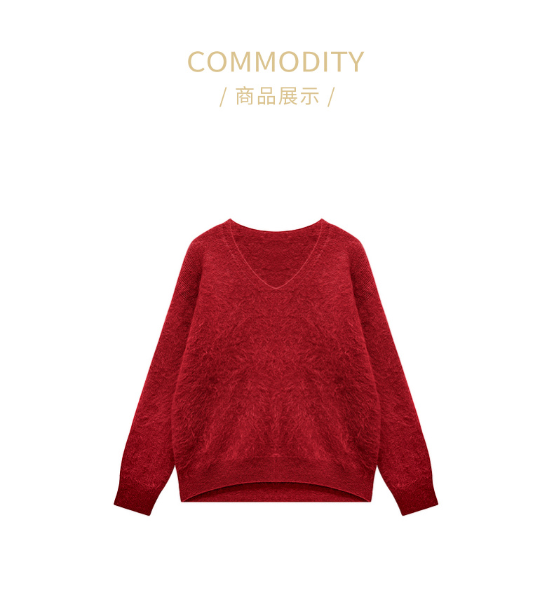 100%山羊绒V领拉绒上衣