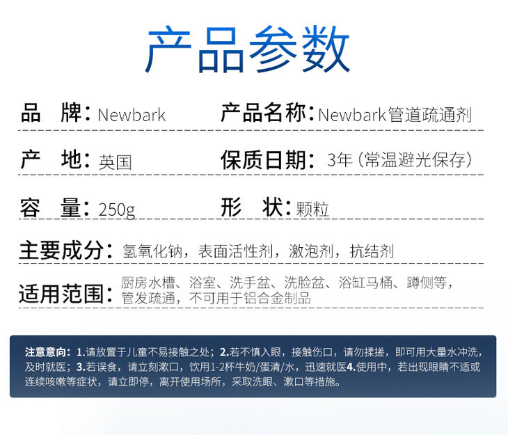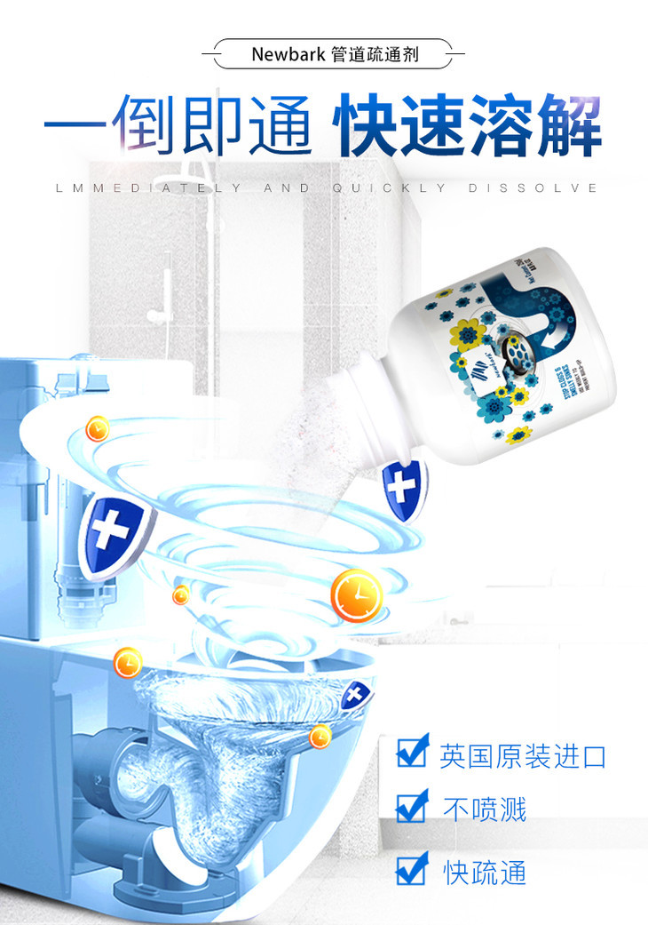 【买2送1 告别堵塞 一步到位 】英国Newbark管道疏通剂 一倒即通快速溶解丨管道疏通剂通卫生间马桶地漏厨房下水道油污堵塞厕所除臭神器
