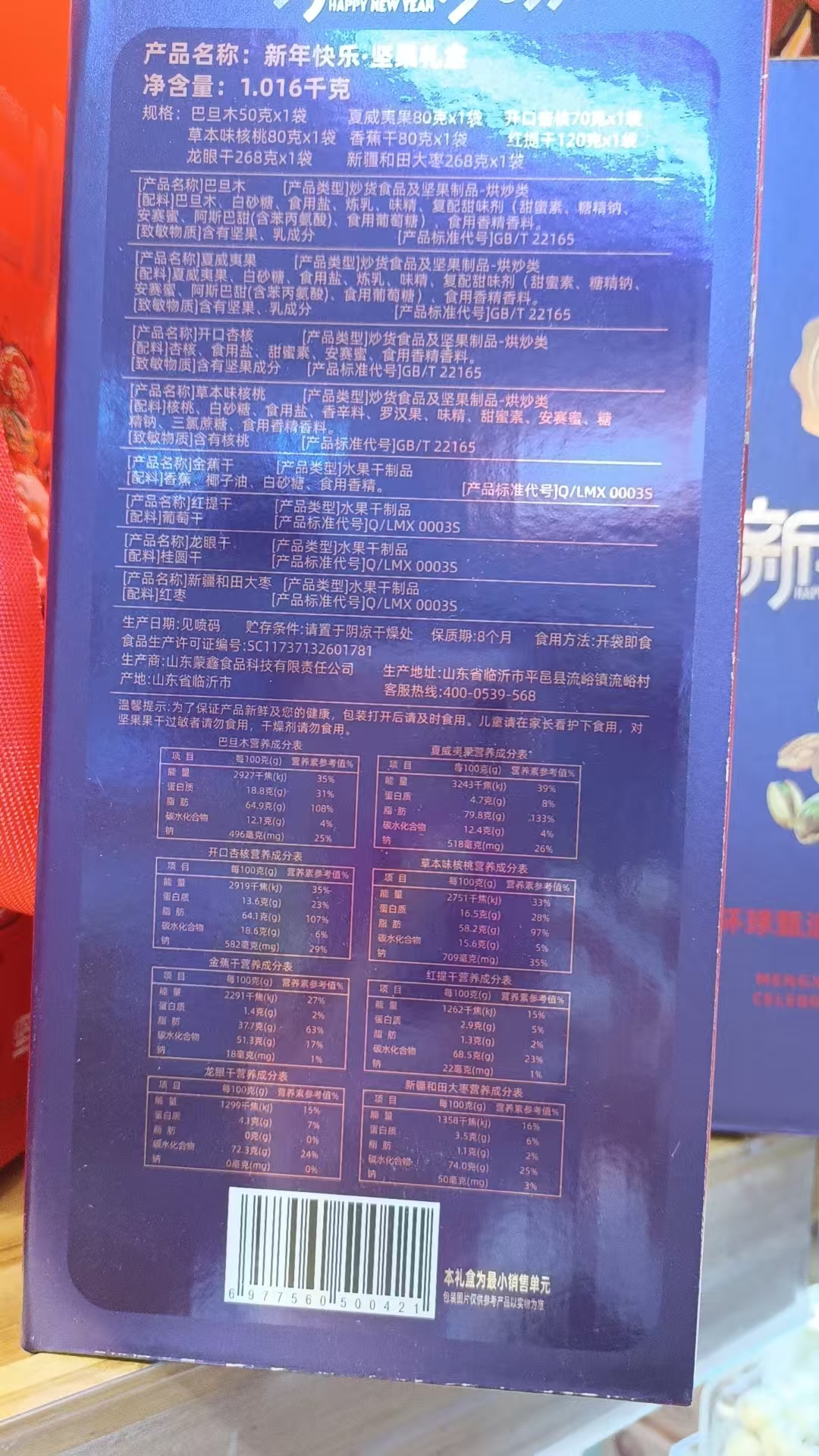 蒙鑫新年快乐坚果礼盒1.016kg/件