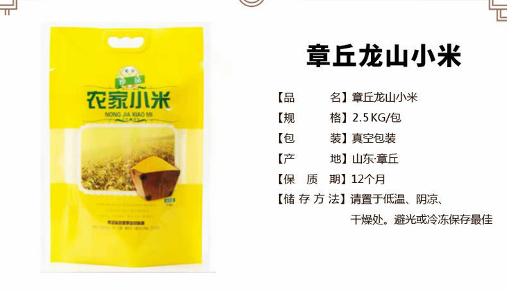 山东特产章丘龙山小米 特级 / 一级 新米宝宝月子米杂粮2.5KG袋装黄小米