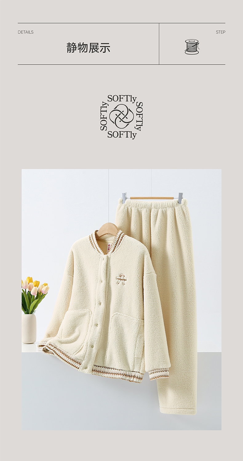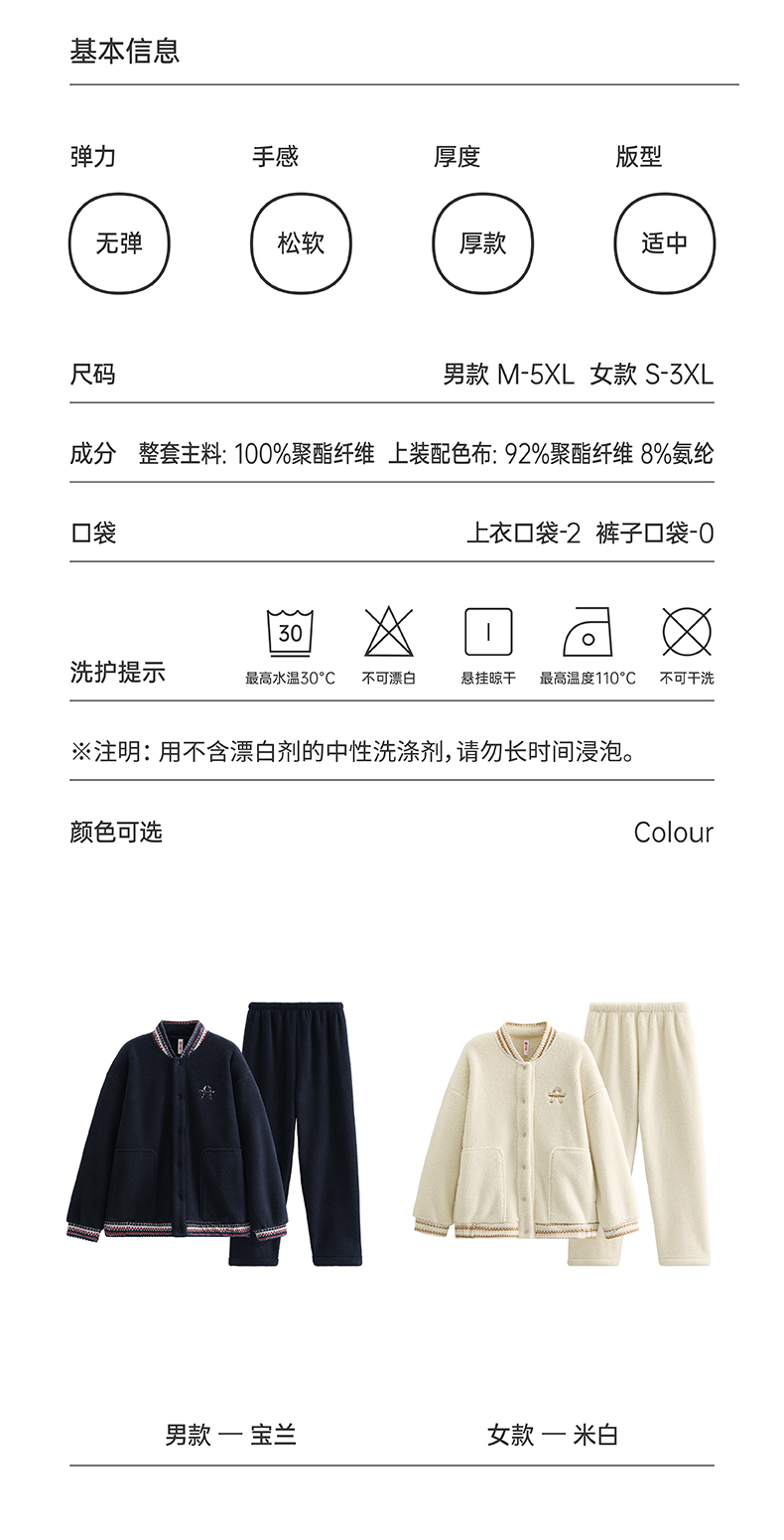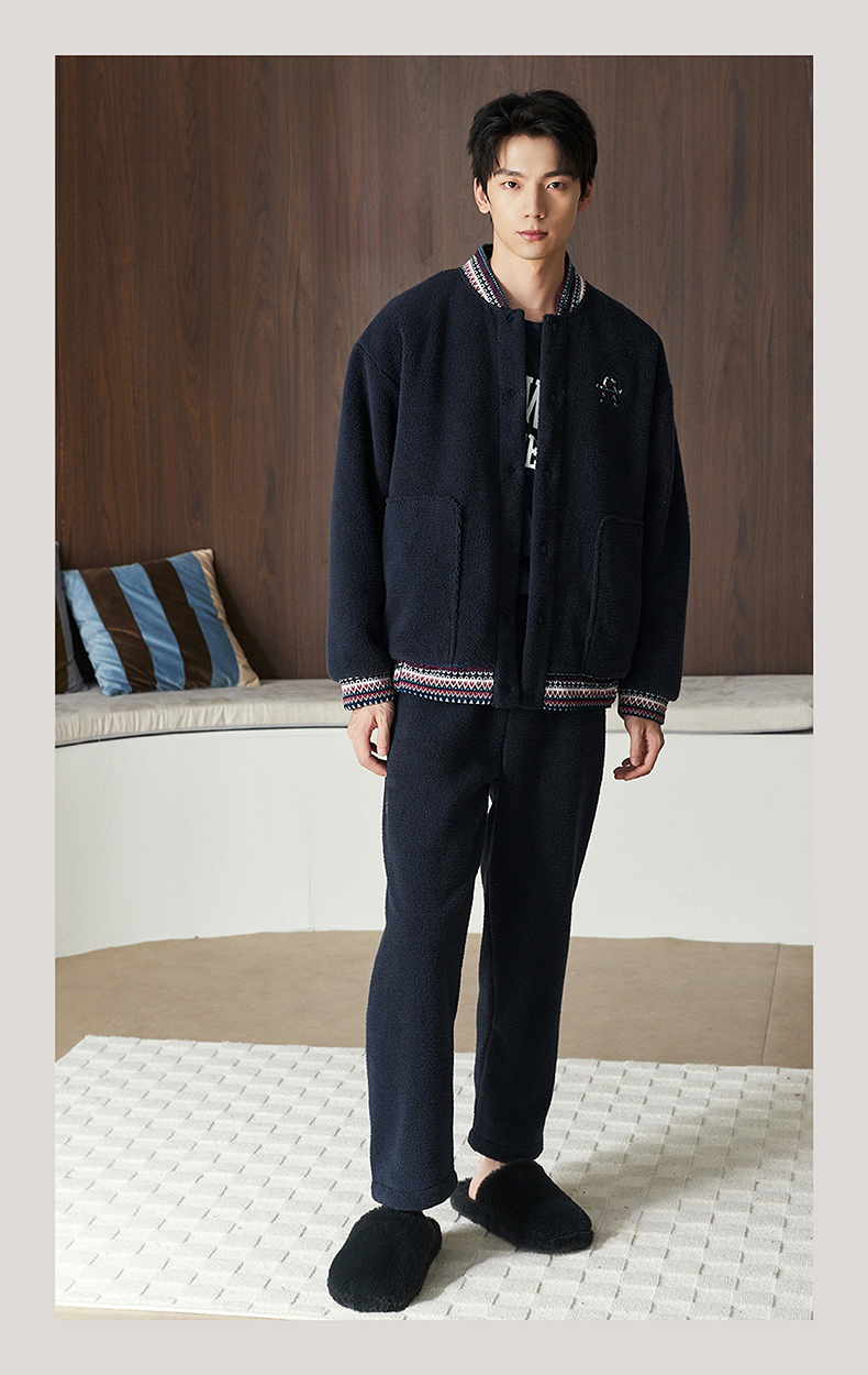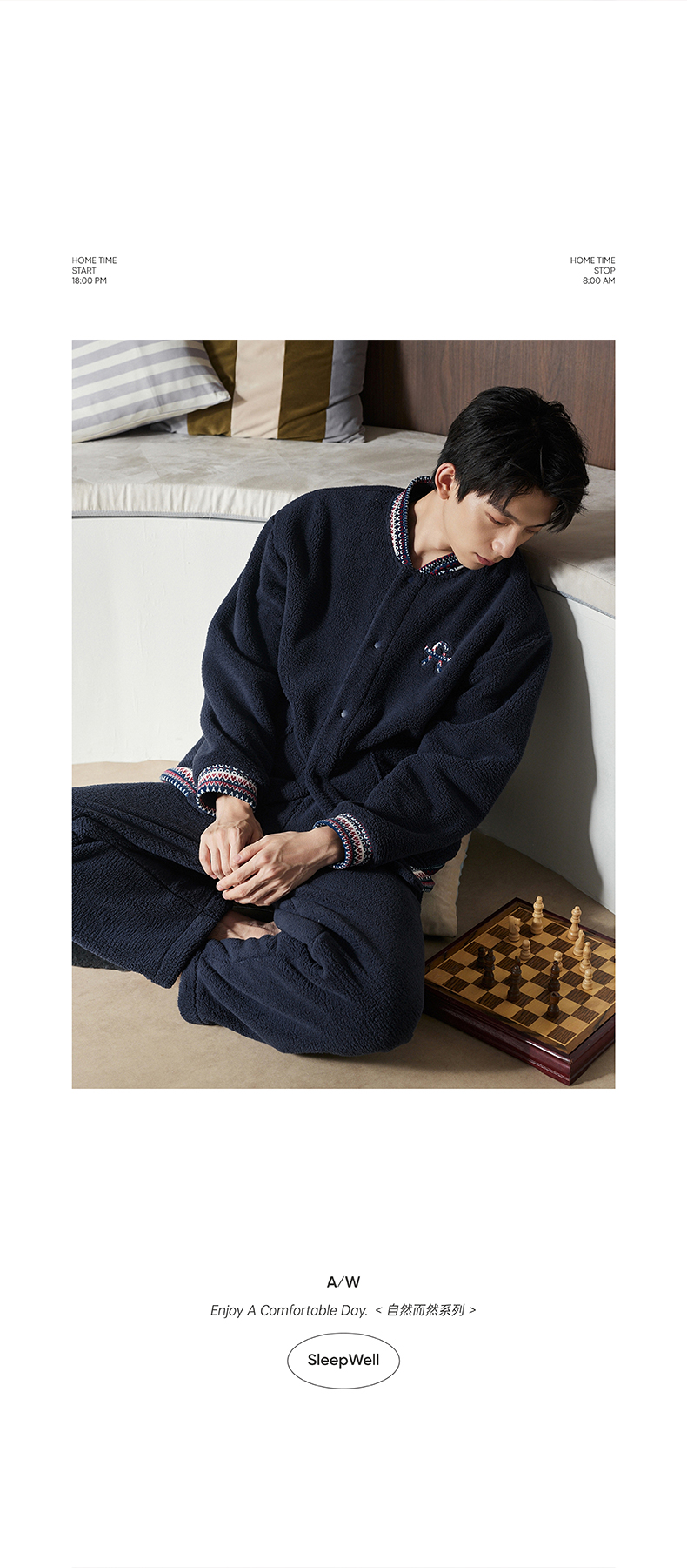 (合作款)芬腾秋冬加绒加厚珊瑚绒开衫情侣家居服套装yc0108013