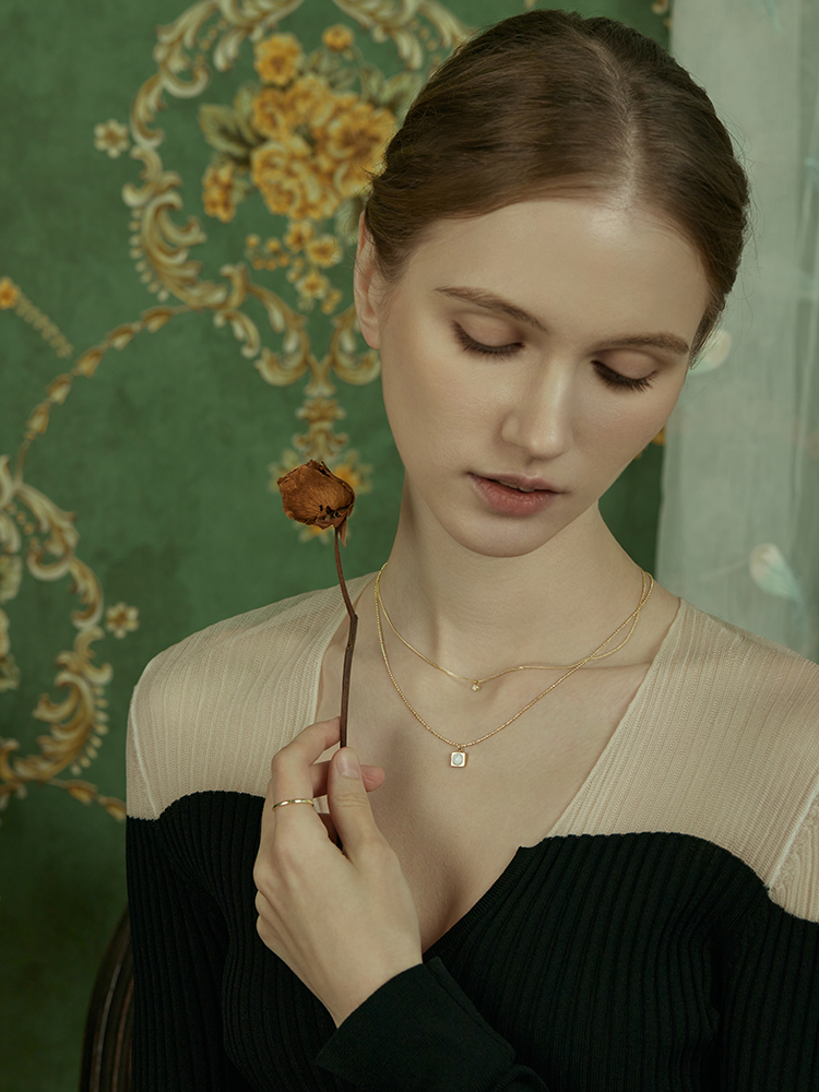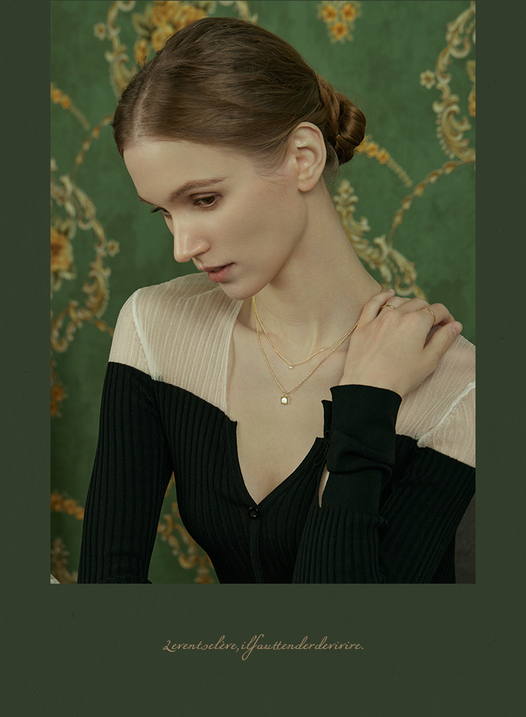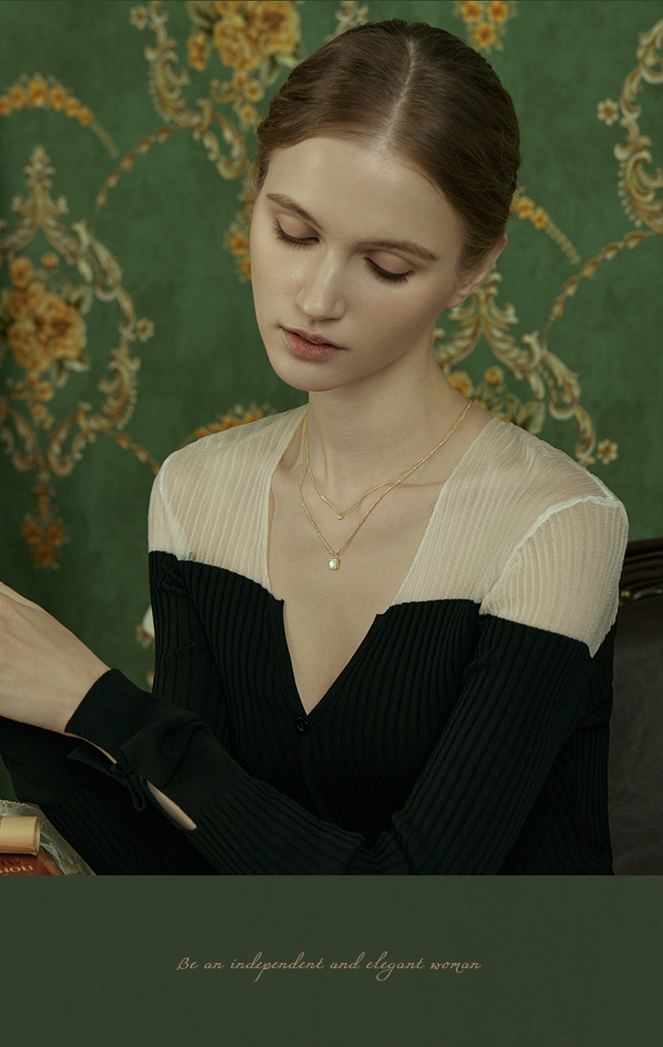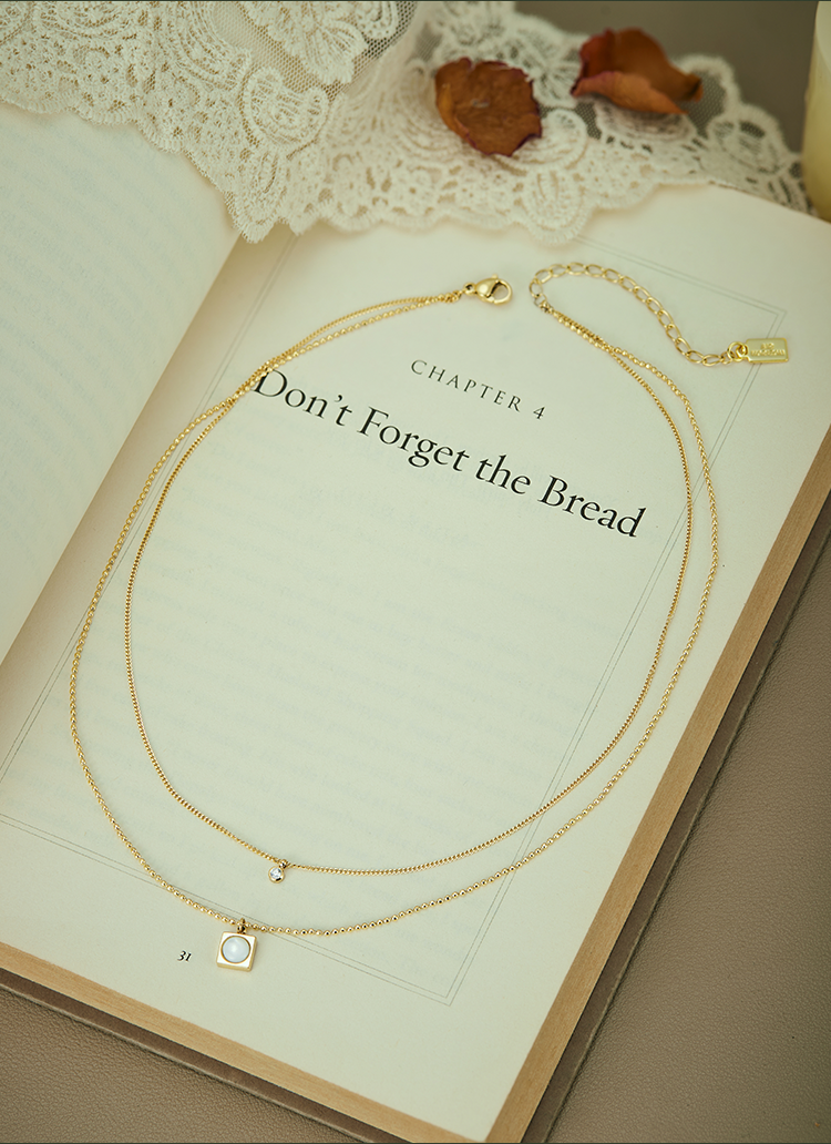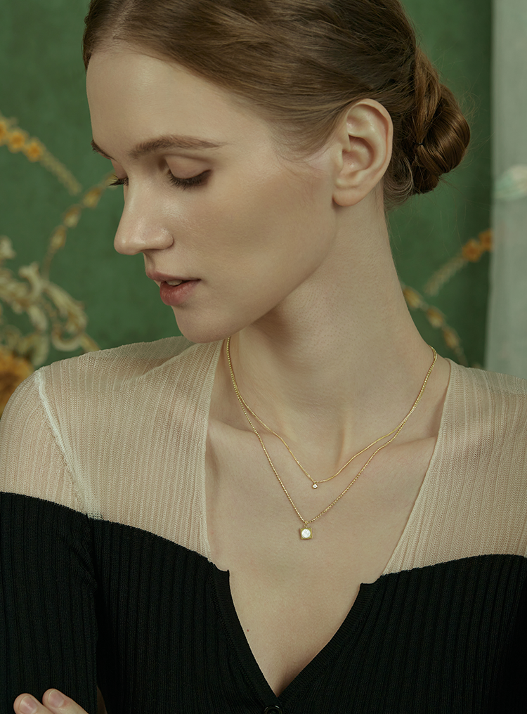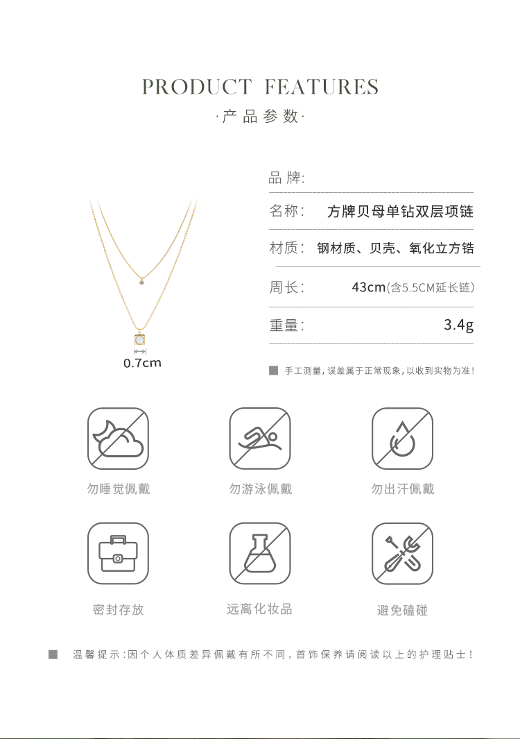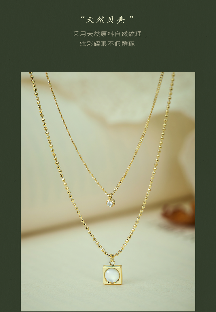 Oflye潮流饰品 高级感小众设计温柔贝壳锆石轻奢项链新款双层叠戴配饰锁骨链女
